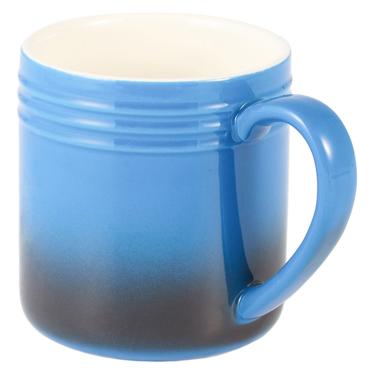 Кружка яркого цвета с фактурными полосами по краю и логотипом Gipfel, внутри - молочно-белого цвета. У нее обтекаемая форма, ее удобно держать в руке, располагать на любой поверхности и не бояться, что она опрокинется.