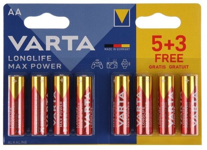 Батарейка Varta LongLife Max Power Alkaline LR6 BL5+3 AA (8шт)