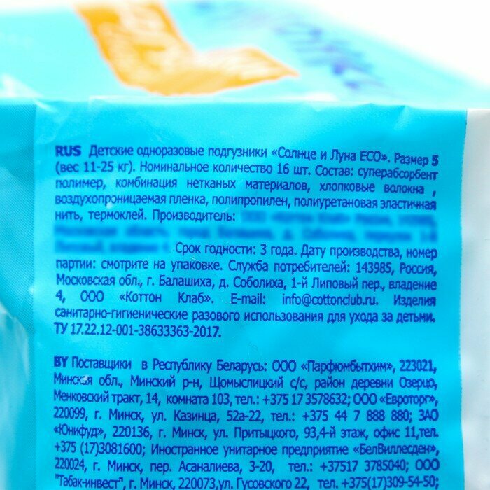 Подгузники одноразовые для детей Солнце и Луна Eco 5/XL 11-25 кг 16 шт