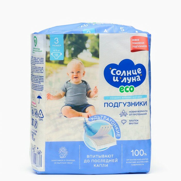Подгузники одноразовые для детей Солнце и Луна 3/M 4-9 кг 18 шт