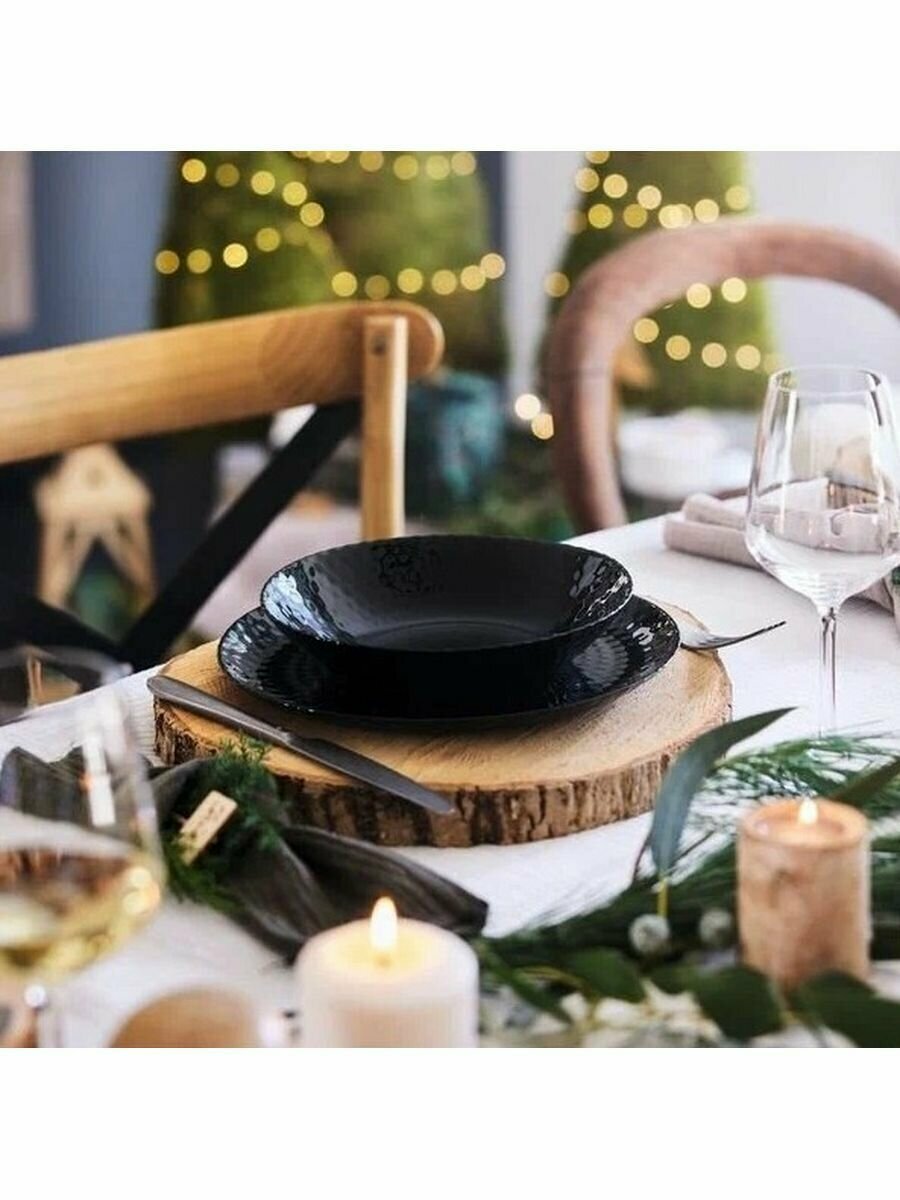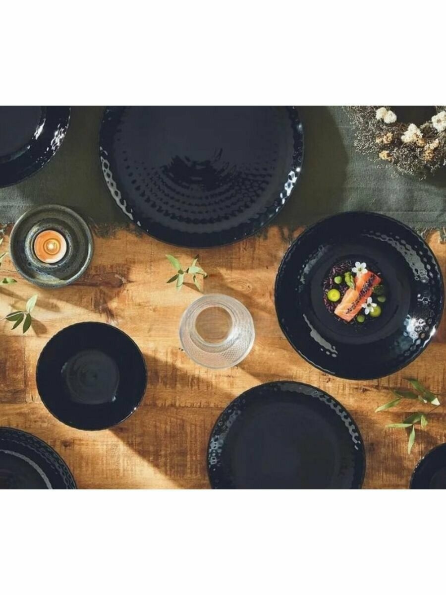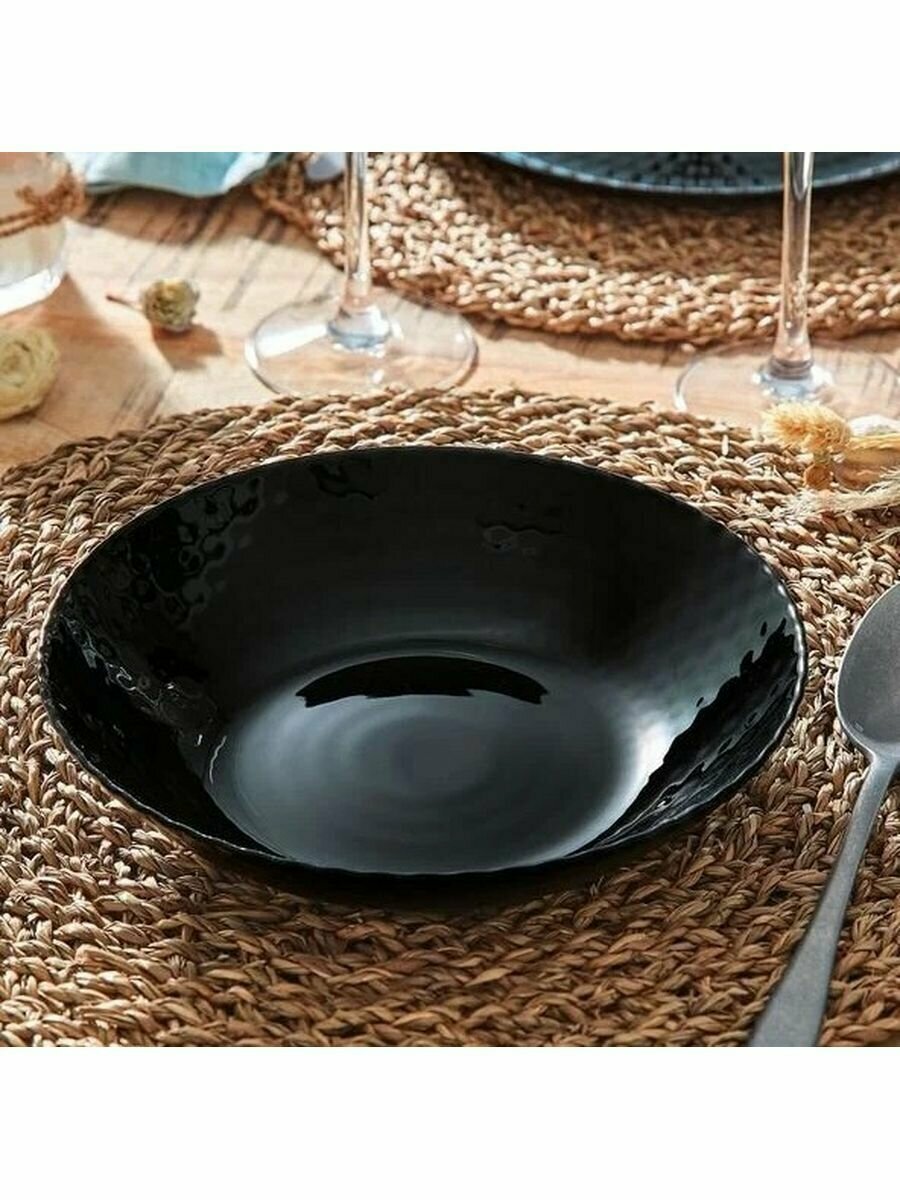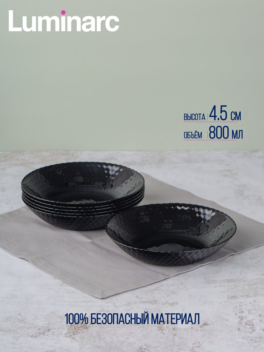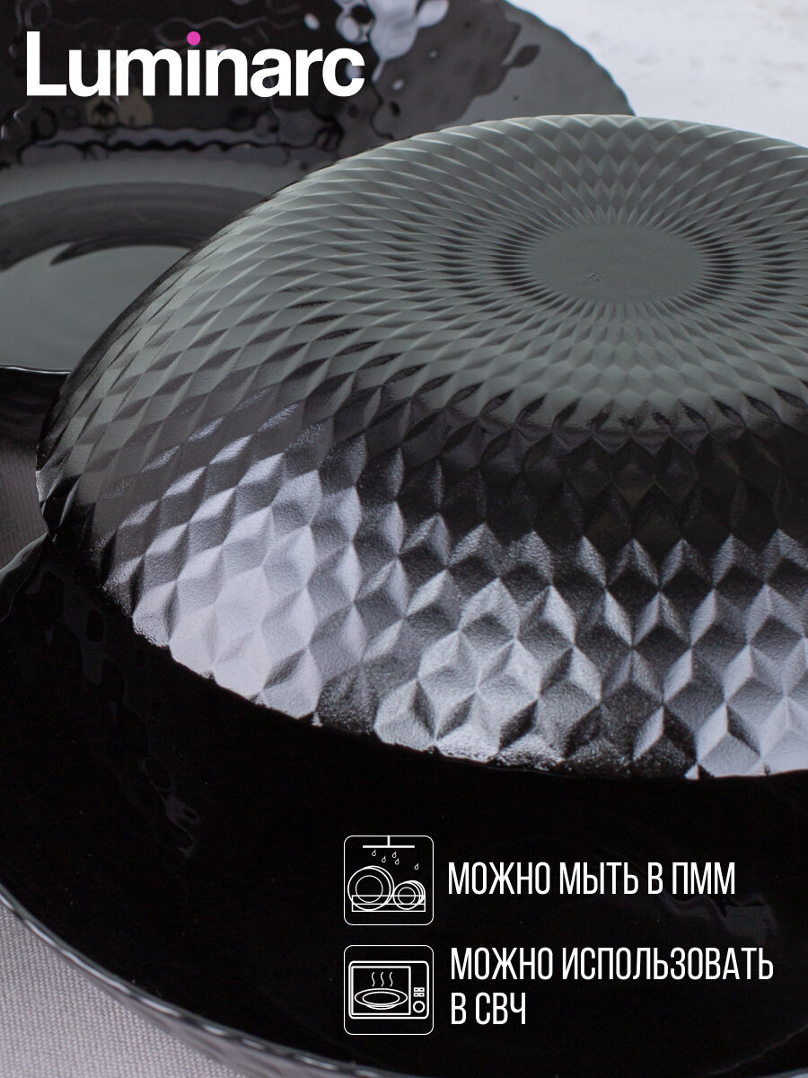 Тарелка LUMINARC суповая PAMPILLE BLACK 20см Тарелка глубокая Pampille понравится эстетам, уделяющим внимание визуальному оформлению трапезы. Опрятный тон и едва заметная рельефность гладкой стеклянной поверхности придает тарелке особую элегантность и утонченность. Тарелка отлично подойдет для супа, каши, других жидких блюд. Также ее можно использовать под салат или закуски при праздничной сервировке стола. Стеклянная посуда Luminarc отличается лаконичностью дизайна, долговечностью и достаточно простым уходом. С ней никогда не бывает проблем. Она легко проходит испытание водой в посудомоечной машине, микроволнами в печках СВЧ, временем. В отличие от керамики стекло не теряет своей презентабельности даже через несколько десятилетий. Цвет остается прежним, появление микротрещин на поверхности ему не грозит.