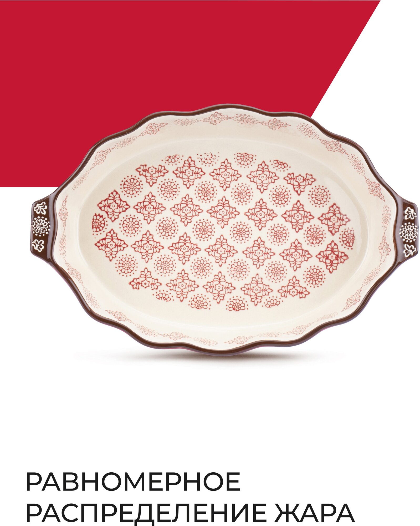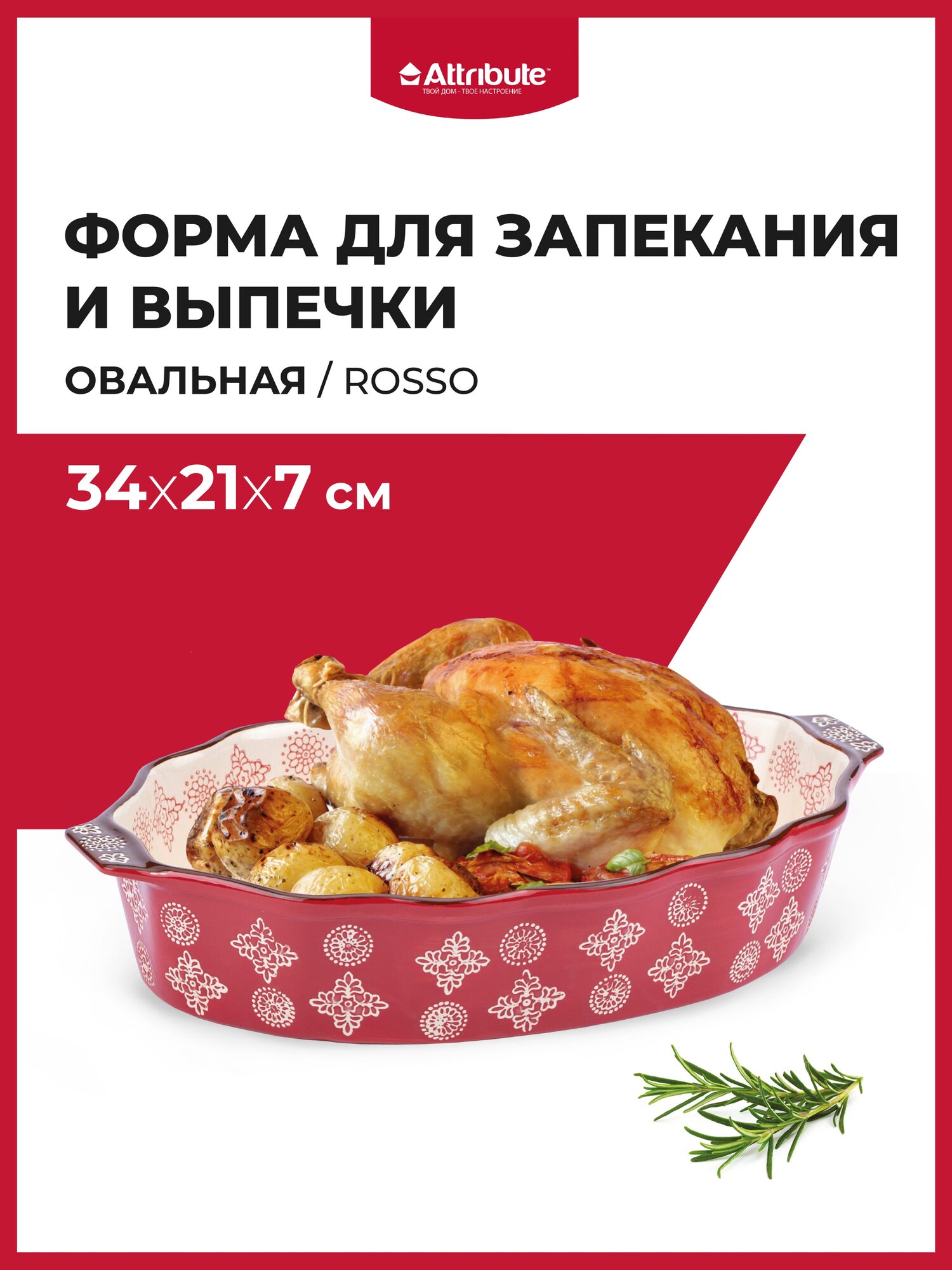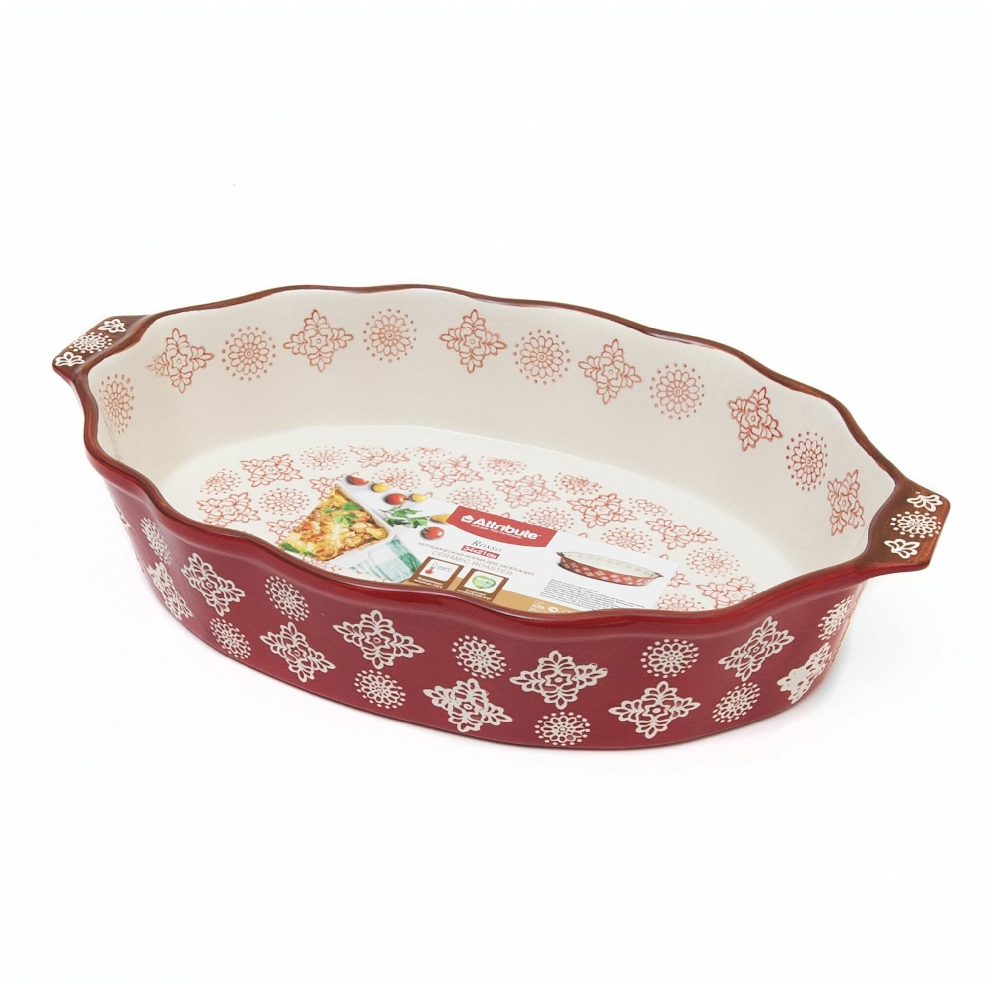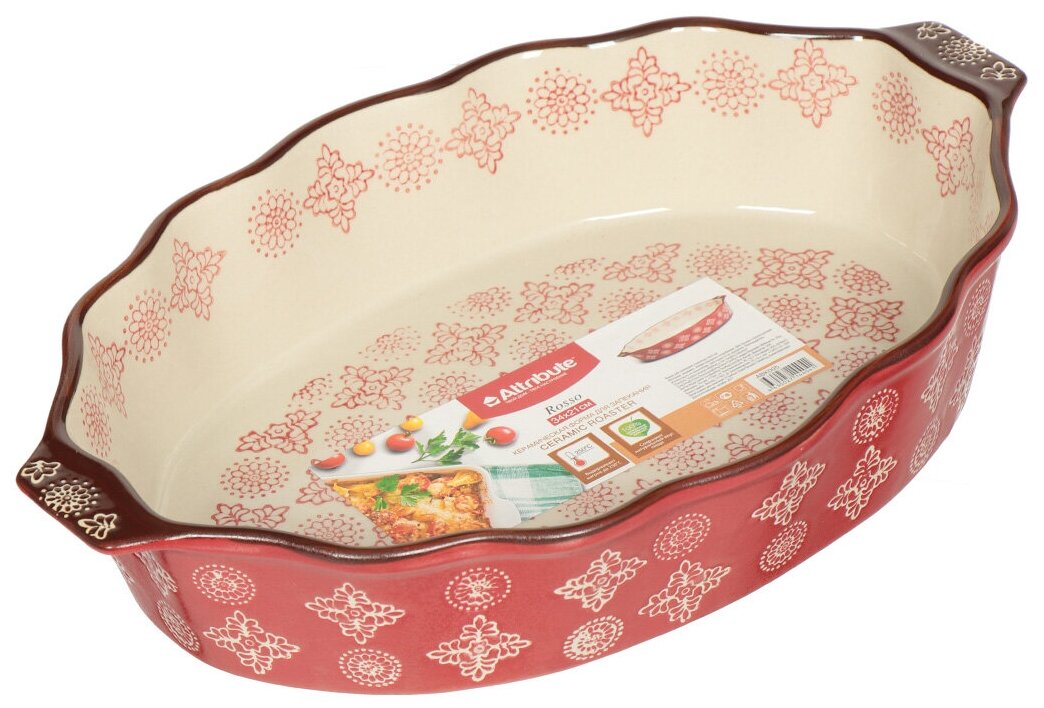 форма для запекания ATTRIBUTE Rosso 39х24х8см 37л овальная с ручками керамика (ABK006) (размер: 39х24см)