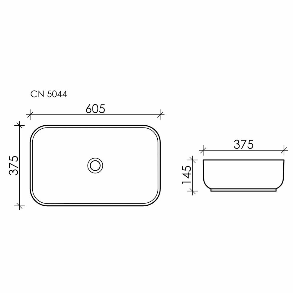 Умывальник чаша накладная прямоугольная Element 605*375*145мм