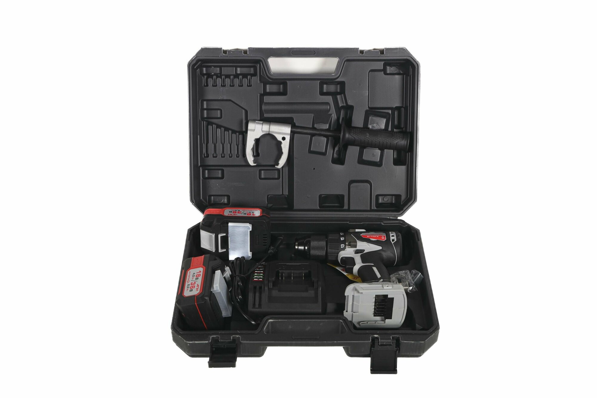 | Комплектация | Дрель-шуруповерт - 1 шт.Аккумулятор 2 Ач - 2 шт.Зарядное устройство - 1 шт.Дополнительная рукоятка - 1 шт.Кейс - 1 шт. |