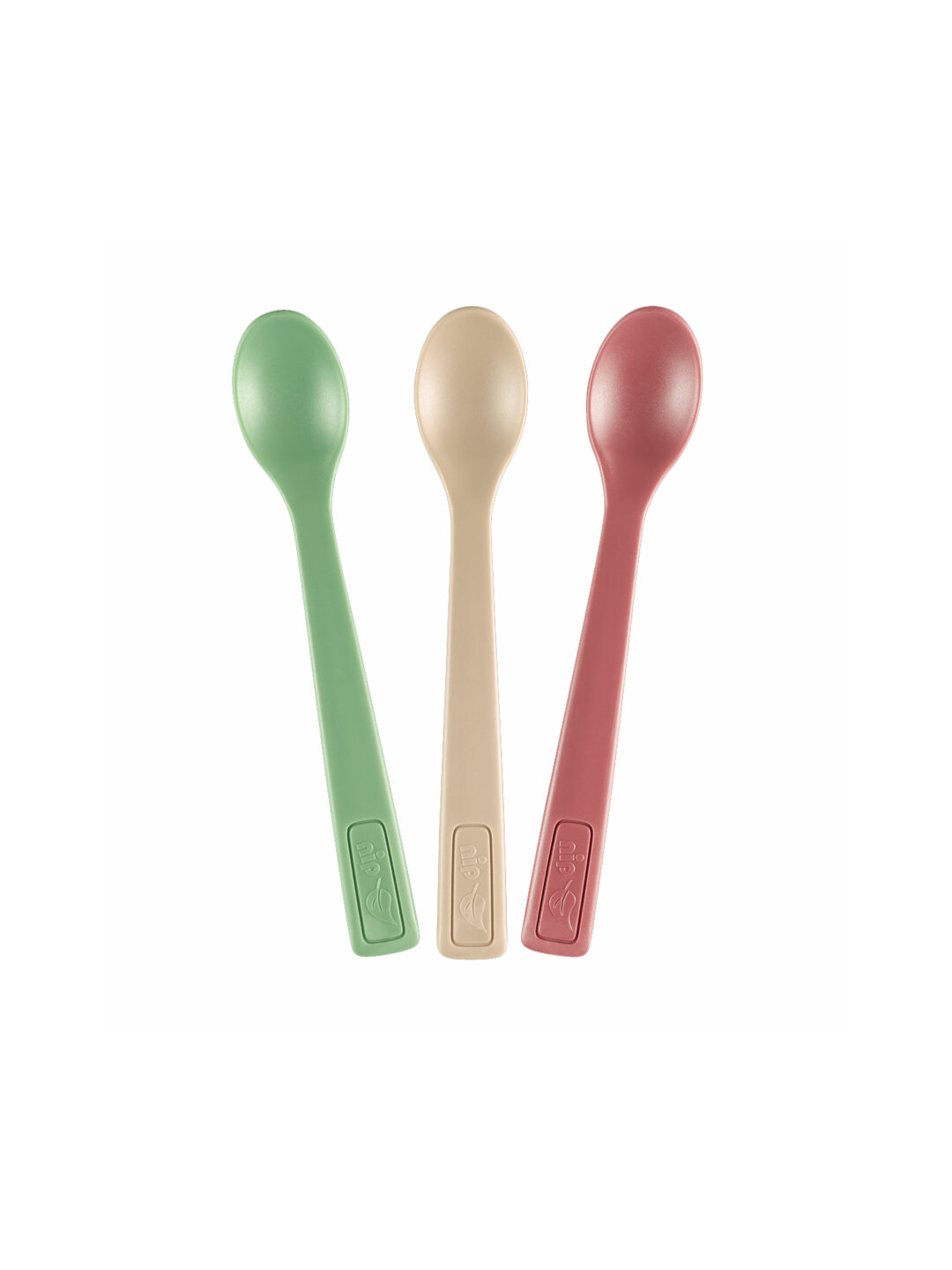 Плоская поверхность ложки позволяет малышу опорожнять ее. Имеют эргономичную форму, удобную для маленьких детских ручек и не травмируют нёбо. Можно использовать в микроволновой печи и посудомоечной машине.