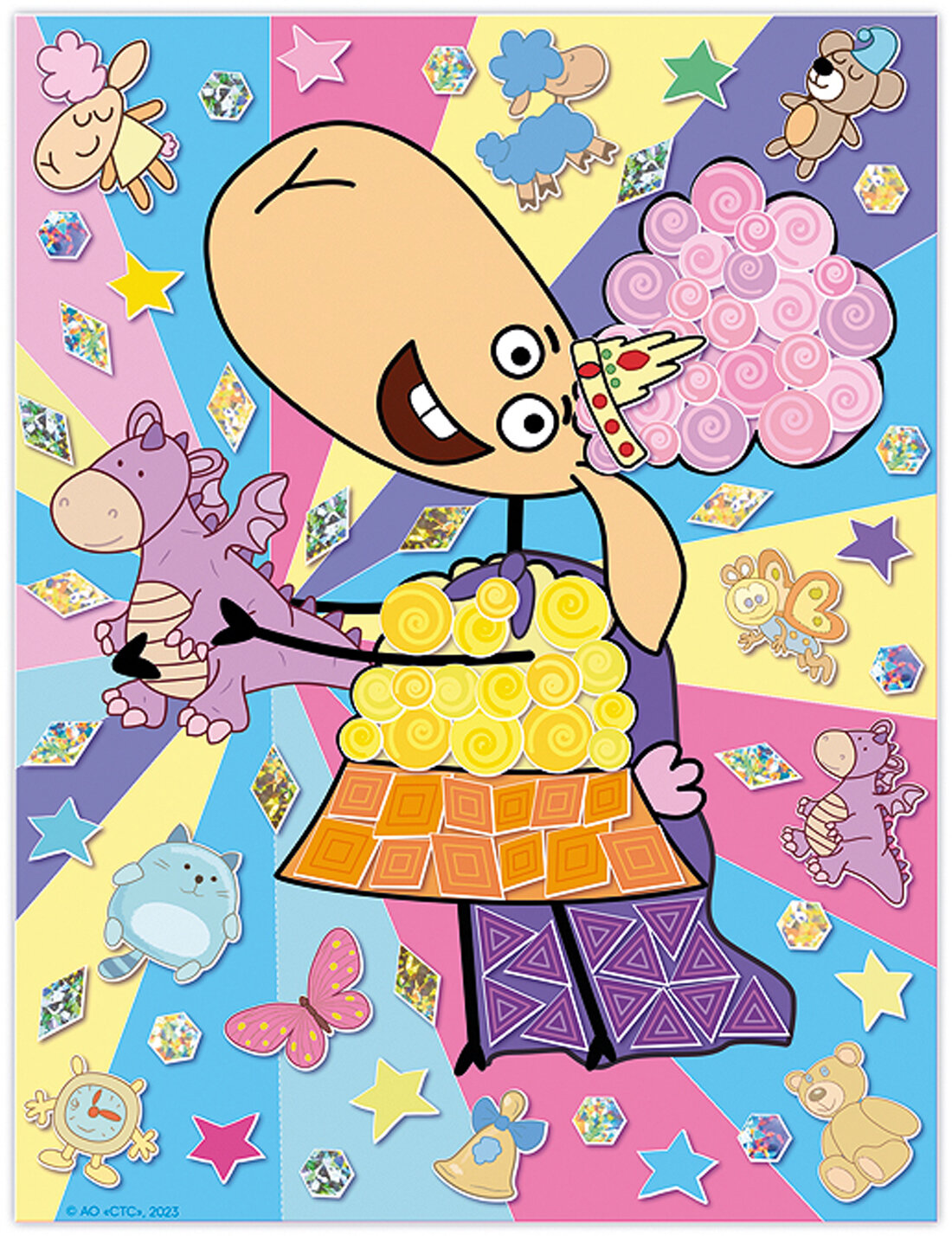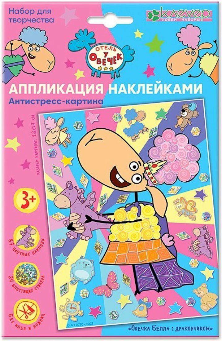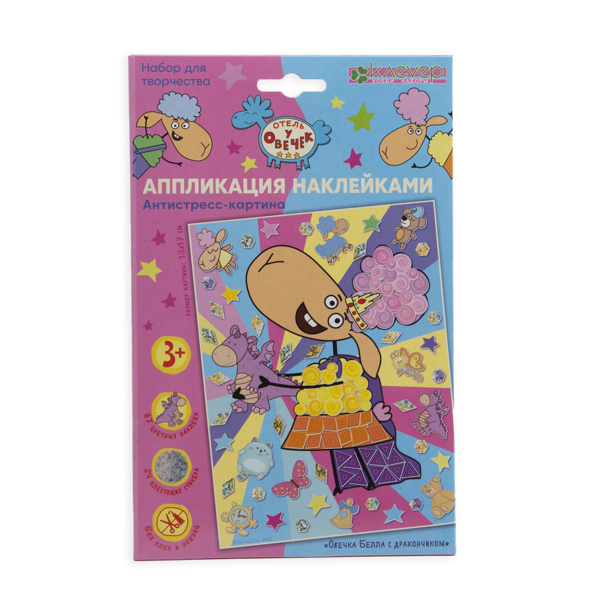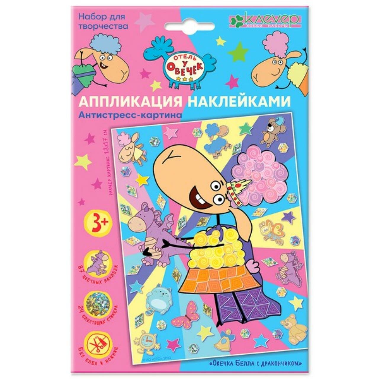 Волшебство техники "Антистресс-декорирование стикерами" (Аппликация наклейками) вовлечёт в творчество детей старше 3 лет. Заполнение картины с овечкой Беллой и игрушкой-дракончиком цветными и голографическими наклейками по своему вкусу развивает воображение и мелкую моторику пальчиков ребёнка. Яркий, позитивный и красочный дизайн, простота работы и радость встречи с любимыми героями мультфильма "Отель у овечек" подарят ребенку отличное настроение!