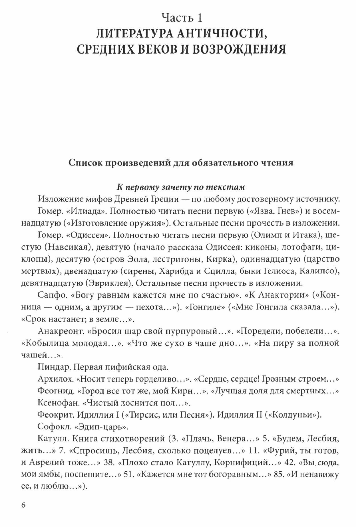 В пособии рассмотрена история литературы от эпохи Античности до XIX в. Содержатся описания требований по усвоению дисциплины, списки произведений для обязательного чтения, экзаменационные вопросы, краткая библиография. Основной частью книги является практикум с вопросами, заданиями и фрагментами произведений для анализа.