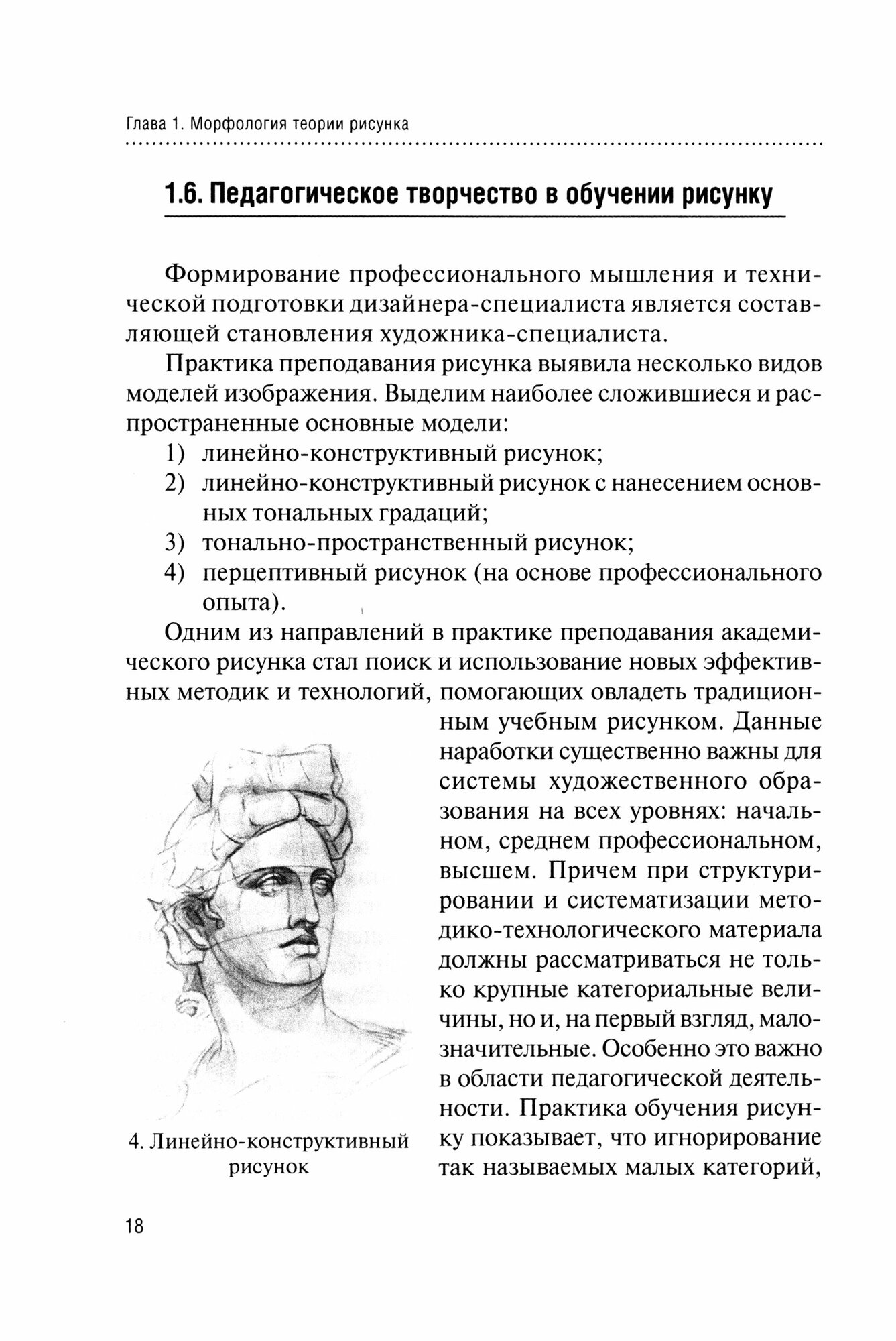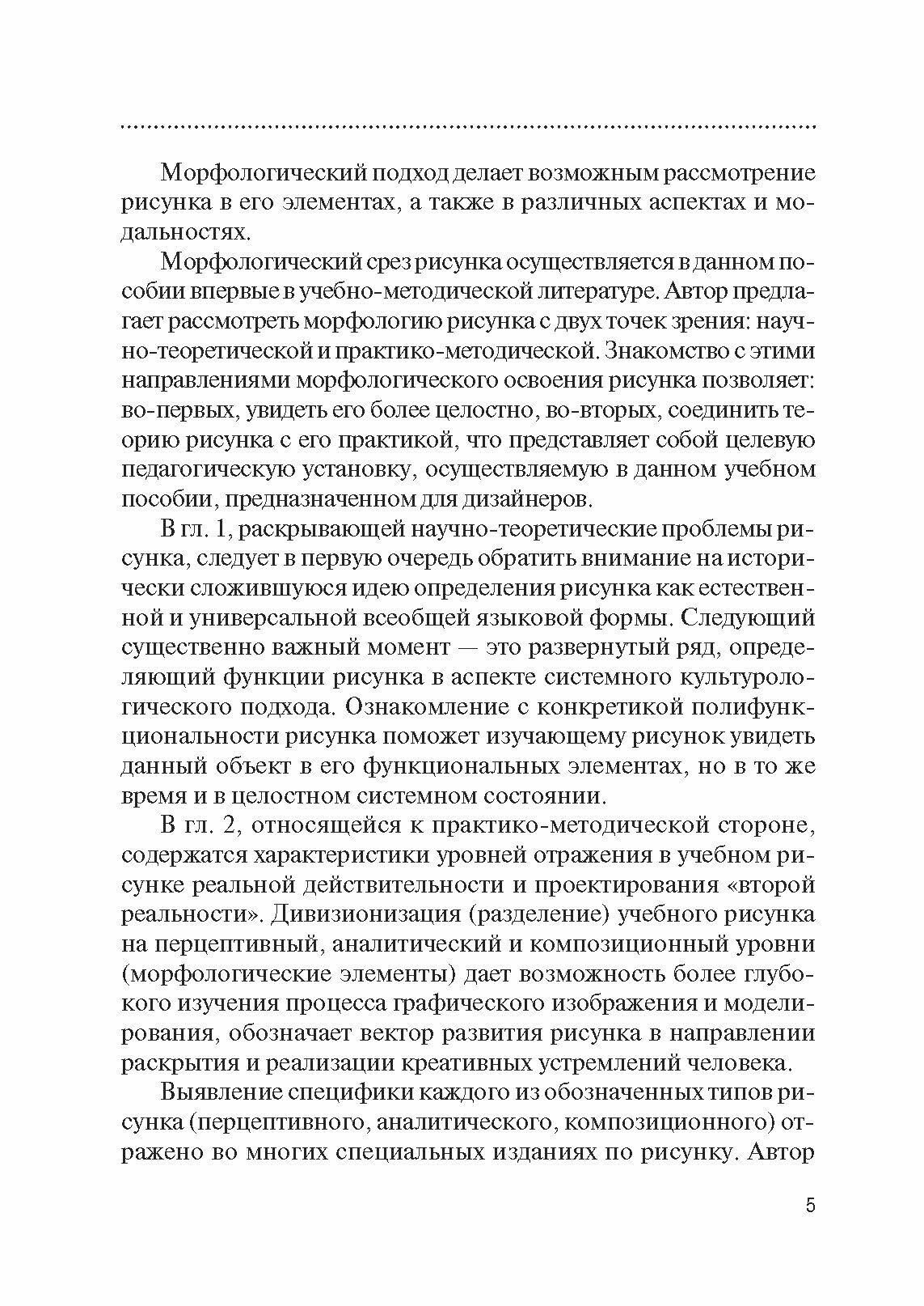 Учебная дисциплина «Рисунок» является базовой для студентов, осваивающих теорию и практику дизайна. Впервые в отечественной и зарубежной практике изучения рисунка (как языкового средства) представлено его системное состояние, отраженное в типологическом подходе, — перцептивный, аналитический и композиционный рисунок. Переосмысление значимости рисунка должно состояться под девизом актуальной задачи: рисунок не только одно из средств создания визуальных форм, но и универсальный язык отражения, исследования, преобразования окружающего мира.