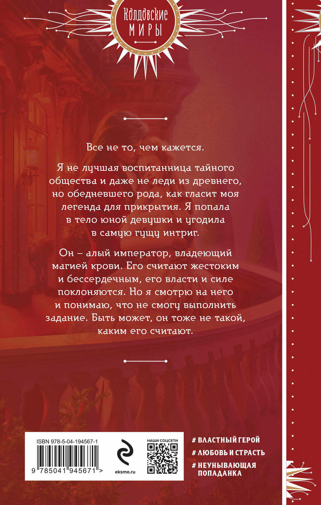 Он – алый император, владеющий магией крови. Его считают жестоким и бессердечным, его власти и силе поклоняются. Но я смотрю на него и понимаю, что не смогу выполнить задание. Быть может, он тоже не такой, каким его считают.