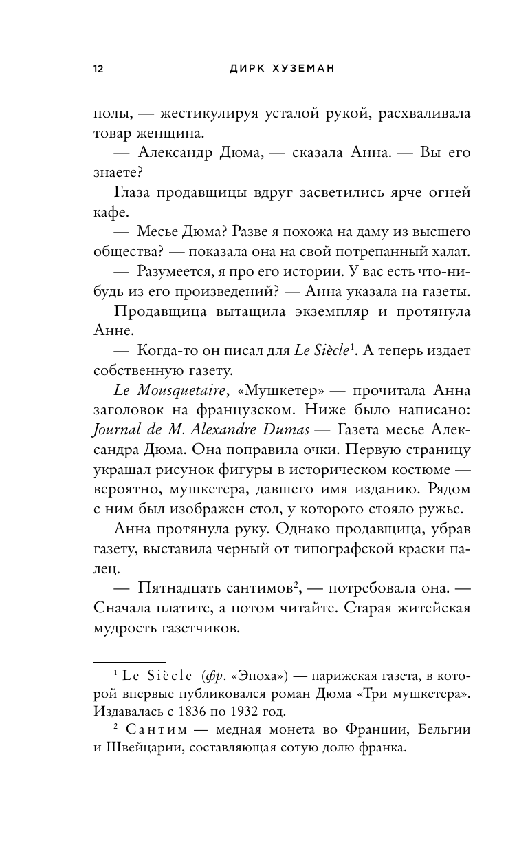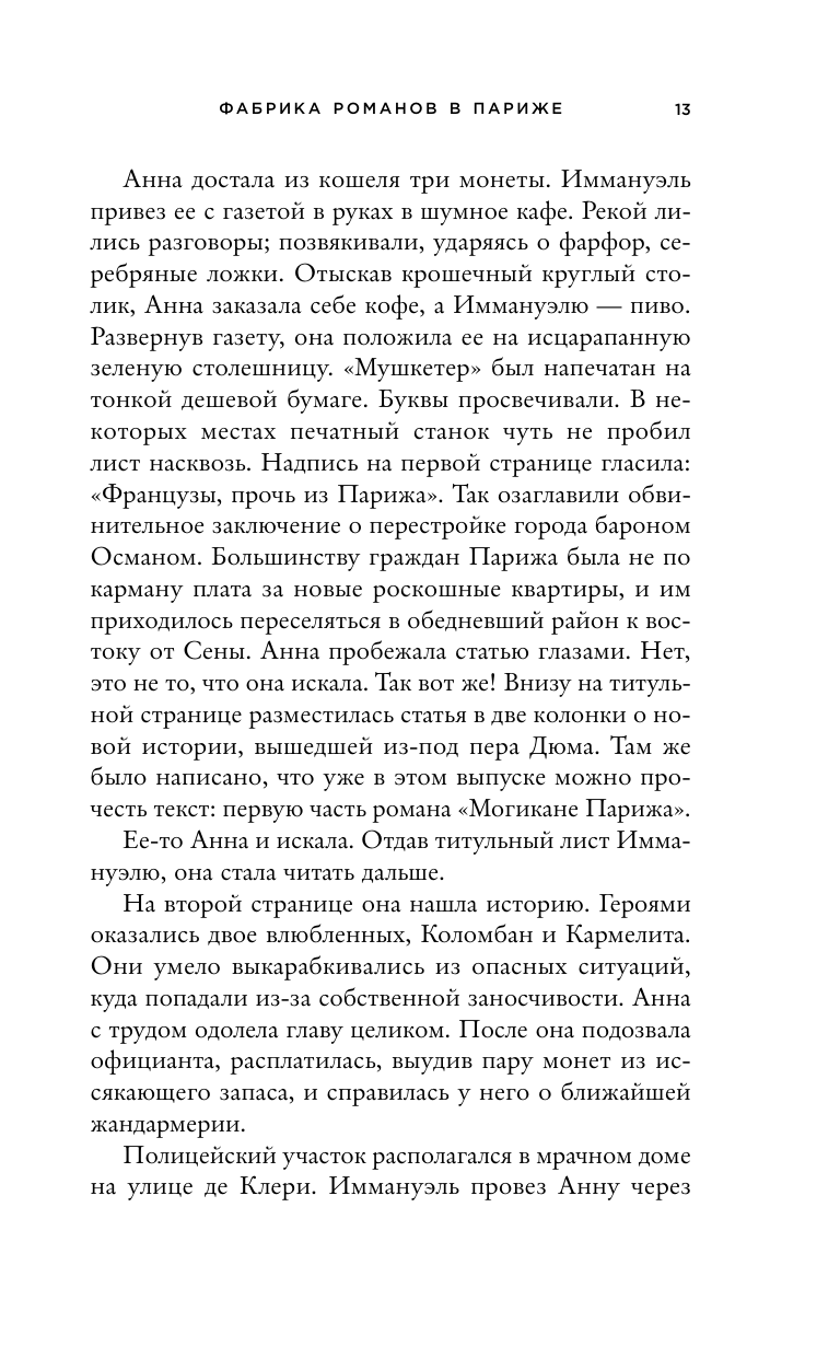 1850 год. Весь Париж не может оторваться от «Трех мушкетеров» и «Графа Монте-Кристо» Александра Дюма. Мало кто знает, что в доме писателя семьдесят «литературных рабов» пишут новые главы его шедевров. Успехи Дюма не могут не вызывать зависть. Последняя работа Александра провоцирует масштабные политические волнения по всей стране. Репутация и жизнь писателя под угрозой. Вот только он статью не писал. Чтобы спасти себя, Дюма должен объединиться со своим врагом — женщиной, чья ненависть сильна так же, как его страх.