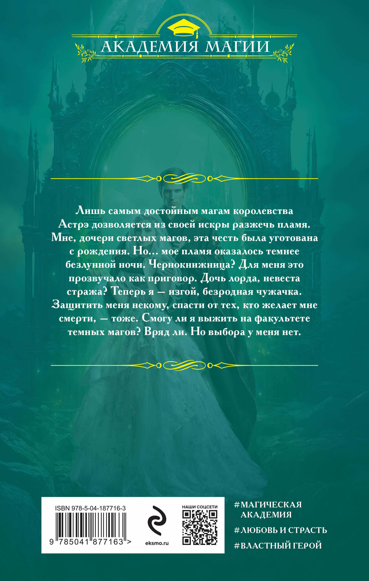 Лишь самым достойным магам королевства Астрэ дозволяется из своей искры разжечь пламя. Мне, дочери светлых магов, эта честь была уготована с рождения. Но… моё пламя оказалось темнее безлунной ночи. Чернокнижница? Для меня это прозвучало как приговор. Дочь лорда, невеста стража? Теперь я — изгой, безродная чужачка. Защитить меня некому, спасти от тех, кто желает мне смерти, — тоже. Смогу ли я выжить на факультете тёмных магов? Вряд ли. Но выбора у меня нет.