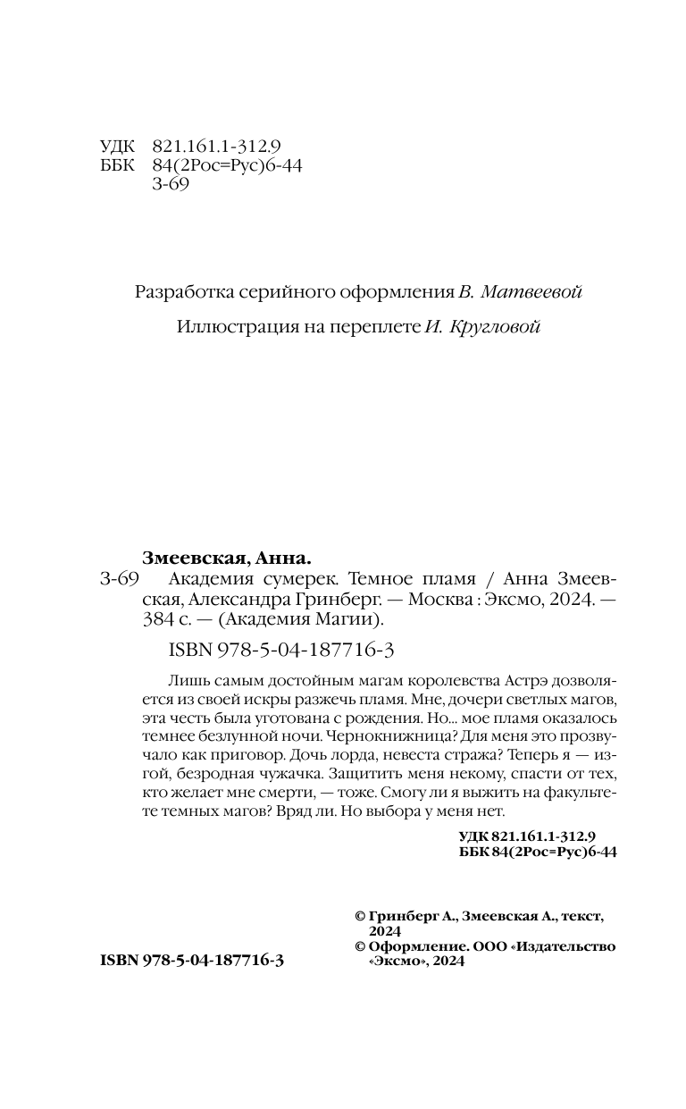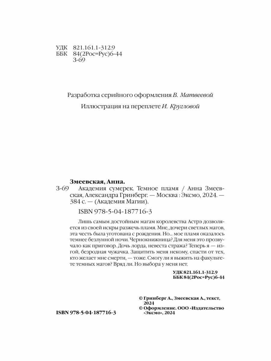 Академия сумерек. Темное пламя (Анна Змеевская, Александра Гринберг); ООО "Издательство "Эксмо", 2024