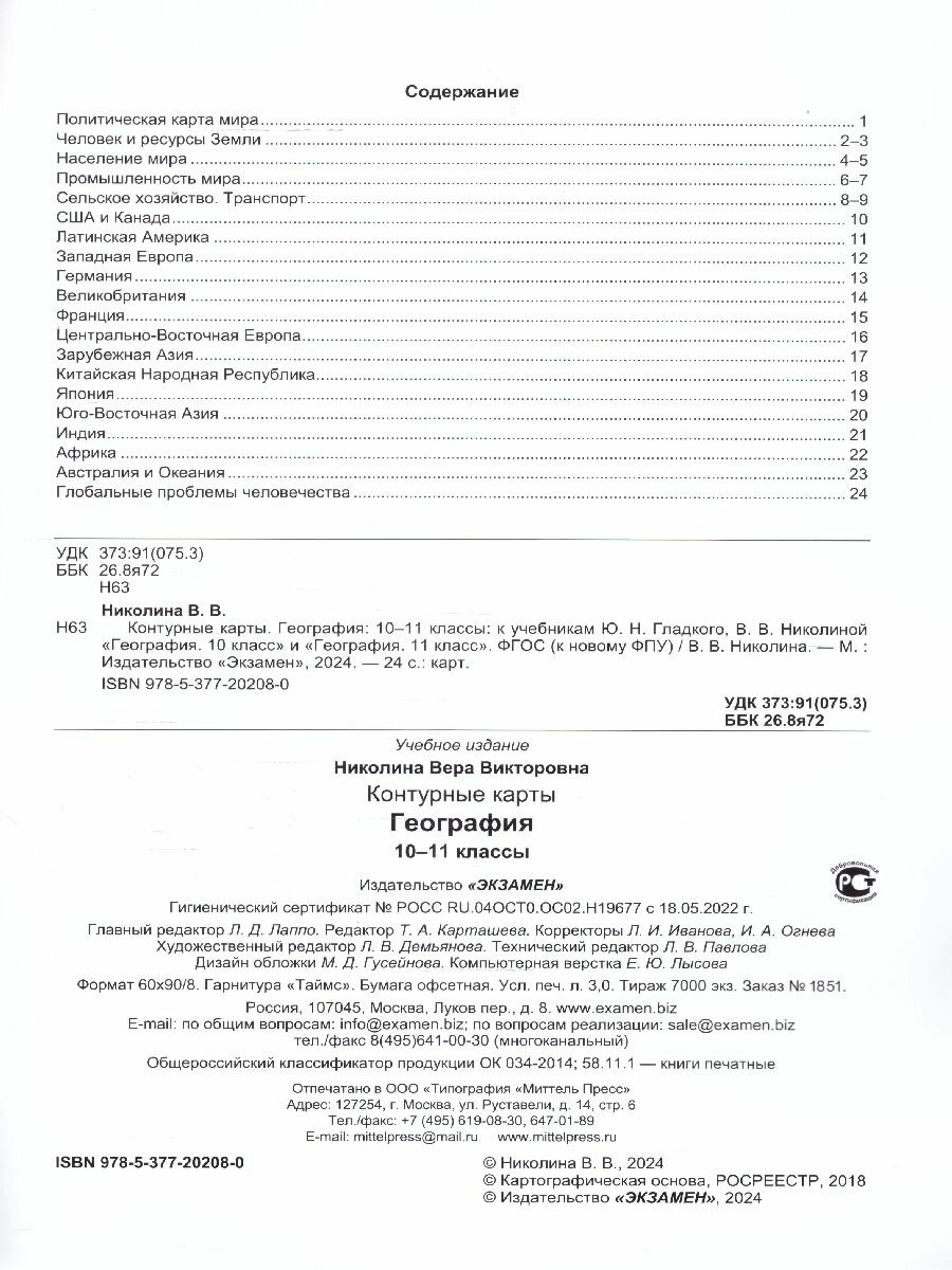 Контурные карты. География: 10-11 классы: к учебникам Ю.Н. Гладкого В.В. Николиной "География. 10 класс" и "География. 11 класс". ФГОС (к новому ФПУ) (Вера Викторовна Николина); Экзамен, 2025