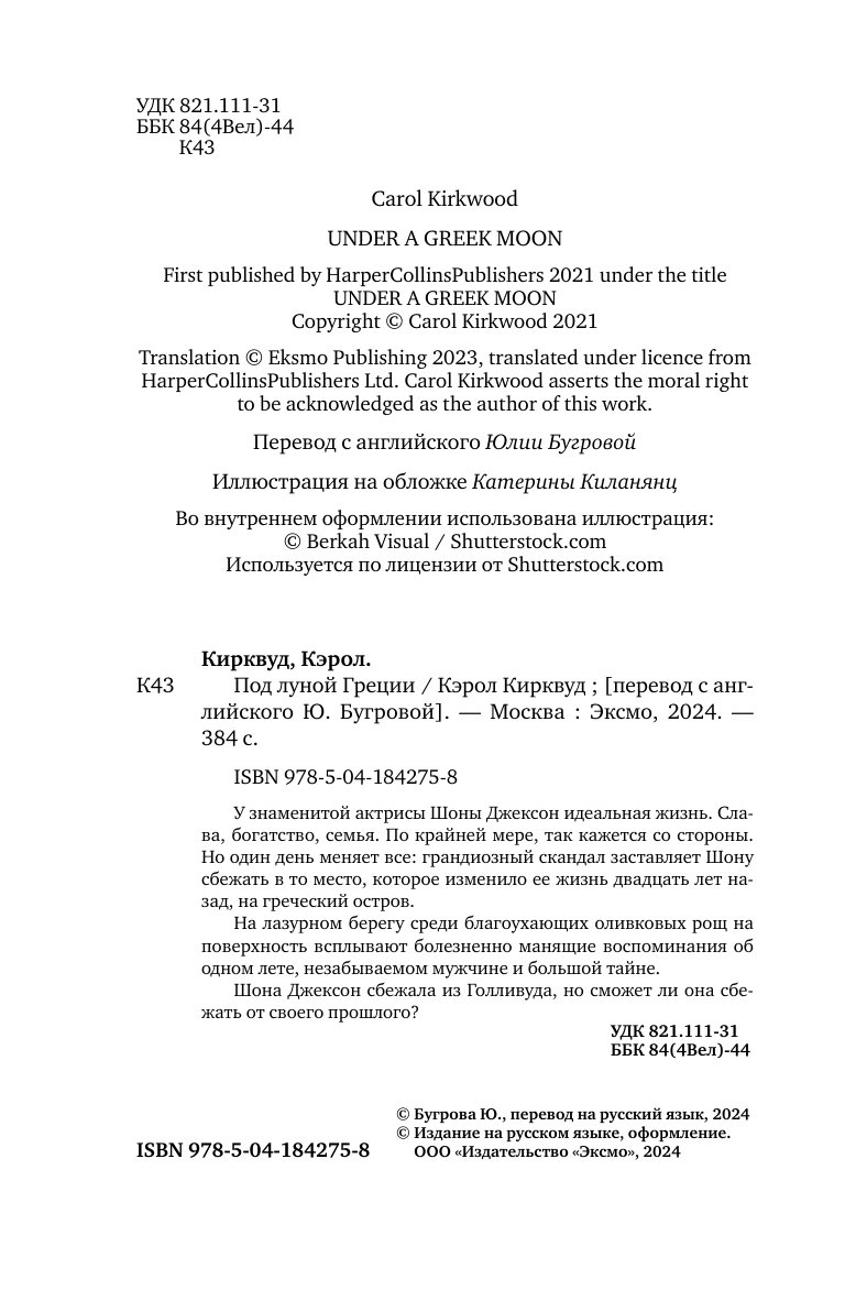 Книга: Под луной Греции (Кэрол Кирквуд); Эксмо, Inspiria, Редакция 1, 2024