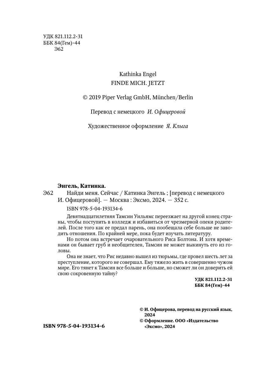 Книга: Найди меня. Сейчас (Катинка Энгель); Эксмо, Like Book, Редакция 1, 2024