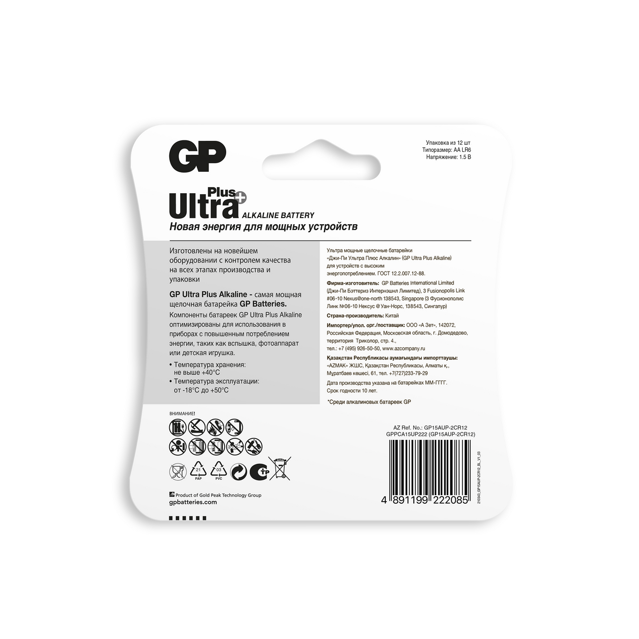 Модель: Ultra Plus Alkaline GP 15AUP-2CR12 AA (12шт)
