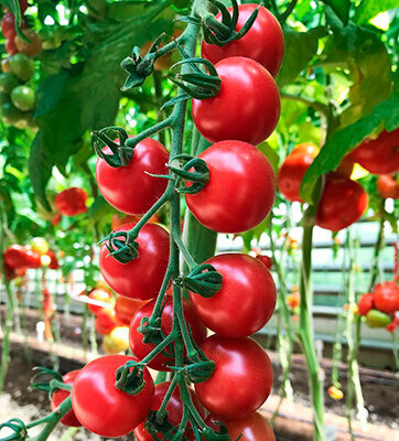 Малиновый коктейль с великолепным фруктовым вкусом Индетерминантный раннеспелый гибрид для выращивания в защищенном грунте. От всходов до начала созревания 95-100 дней. Растение высокорослое, компактное, с укороченными междоузлиями, нуждается в подвязке и формировании. В красивой, простой, компактной кисти 8-12 плодов массой 25-30 г, округлые, гладкие, интенсивной малиновой окраски. По вкусу нет равных! Неоднократно являлся победителем дегустационных марафонов, благодаря отличному незабываемому фруктовому вкусу и прекрасному внешнему виду. Предназначен для свежего потребления и домашней кулинарии.