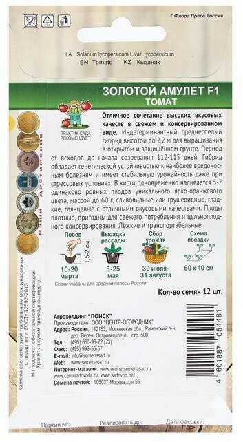Сервис сравнения цен СкидкаГИД предлагает сравнить цены на товар «Семена Поиск Томат Золотой амулет 12 шт Семена Томат Золотой амулет F1 Домашняя заготовка 12 шт./уп.»