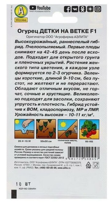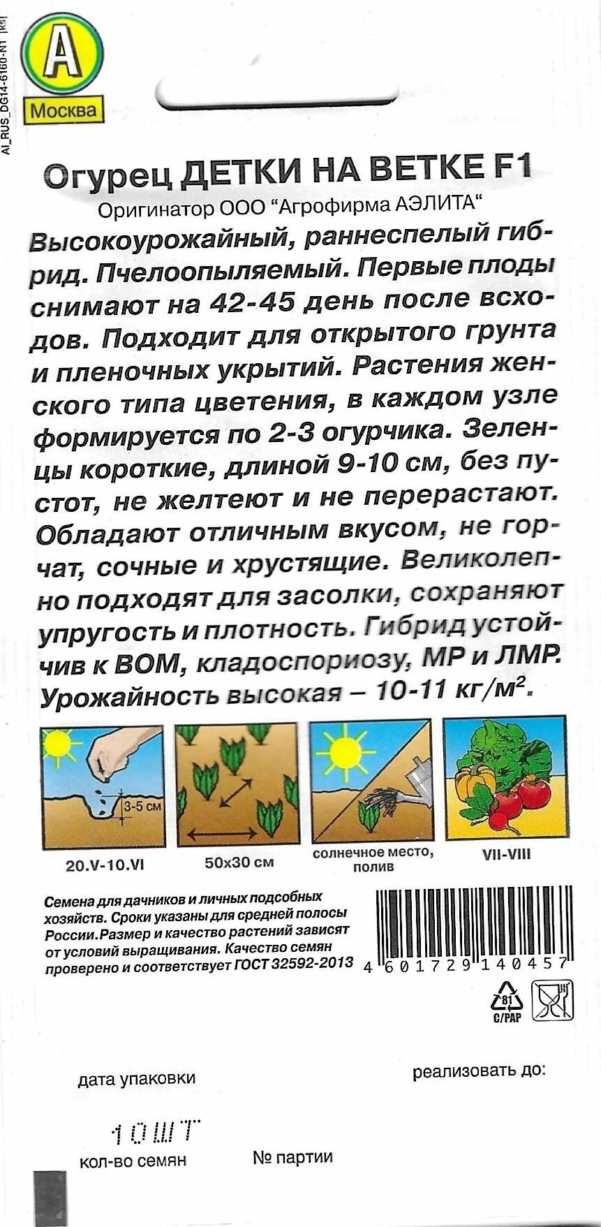 Сервис сравнения цен СкидкаГИД предлагает сравнить цены на товар «Семена Аэлита Огурец Детки на ветке F1»