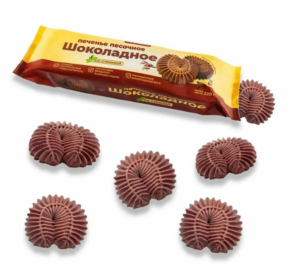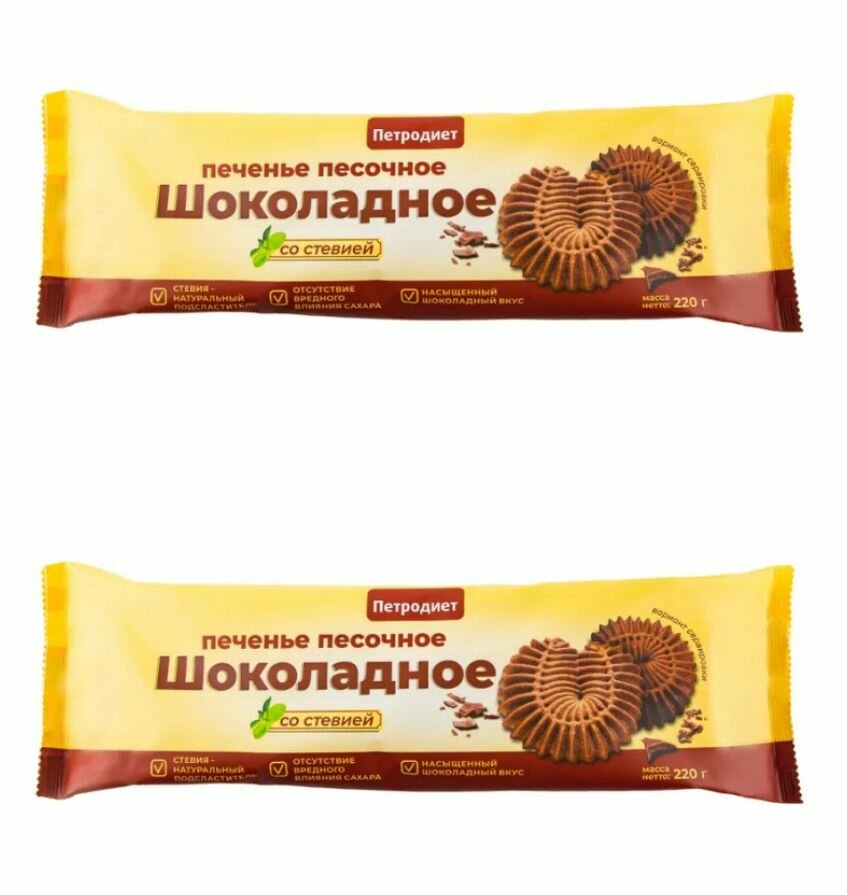 Печенье песочное шоколадное "Петродиет", на фруктозе со стевией полезная альтернатива традиционным сладостям. Оно отличается аппетитной текстурой, выразительным вкусом и приготовлено без добавления сахара.