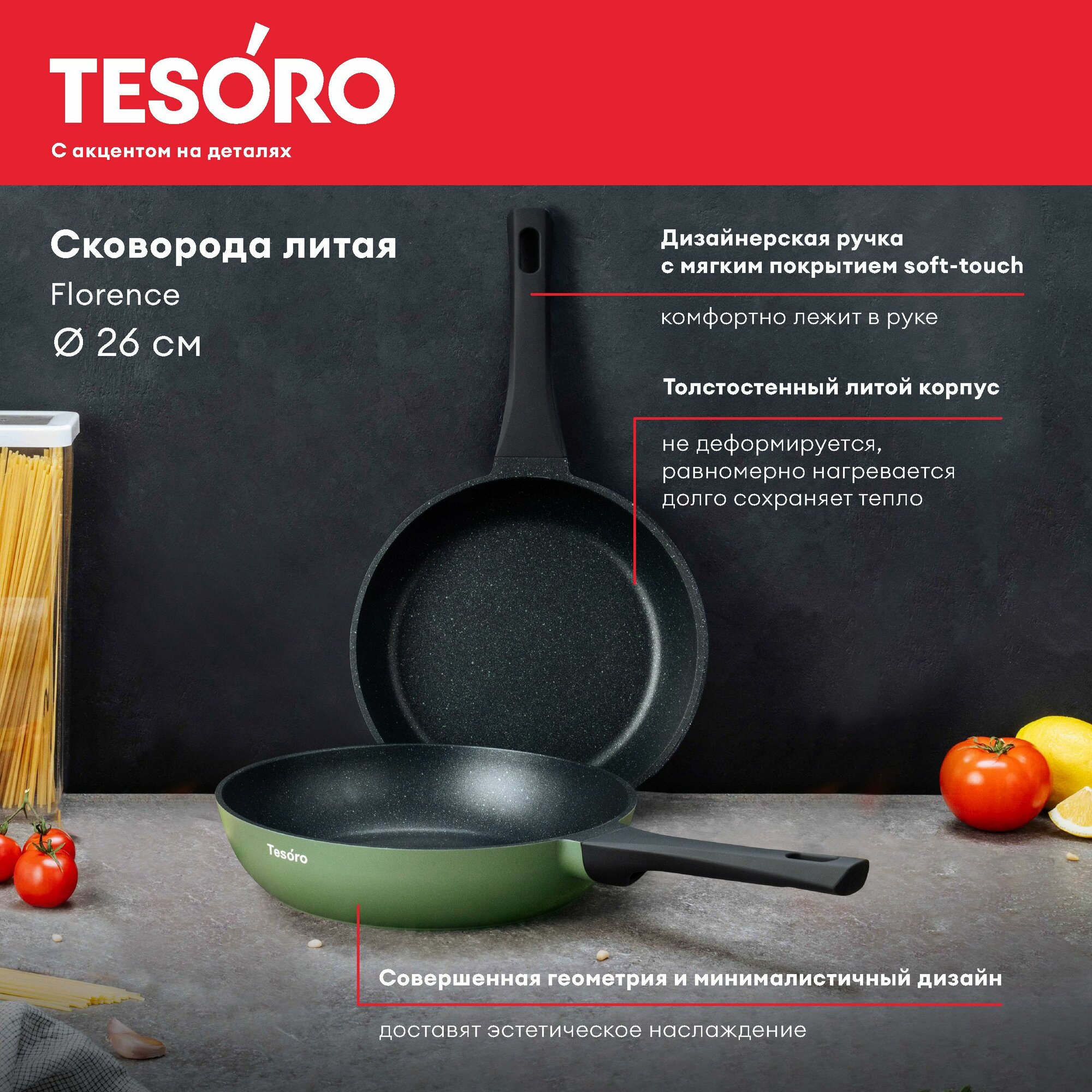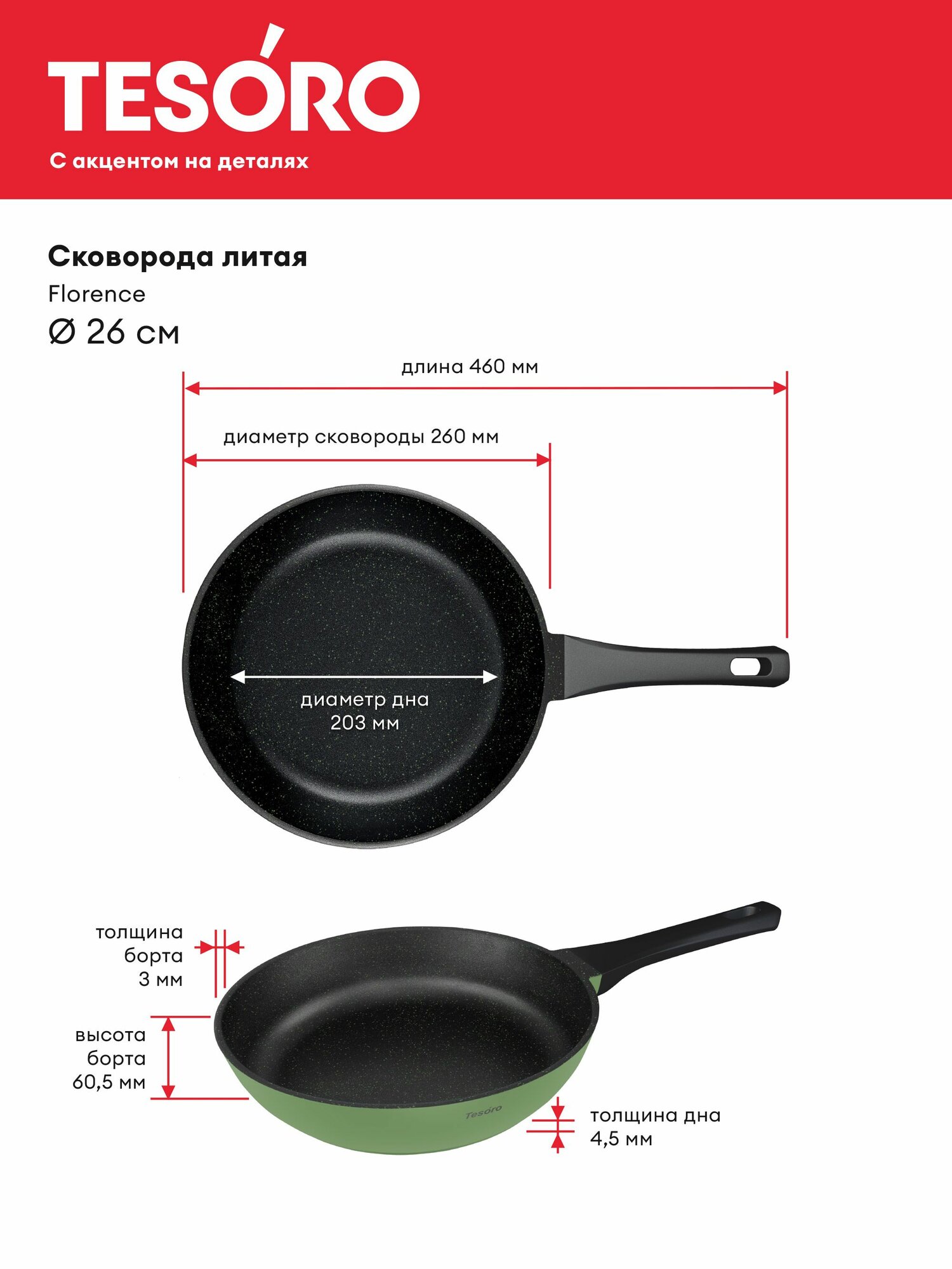 Сковорода Нева Металл Посуда Tesoro Mint 26 см