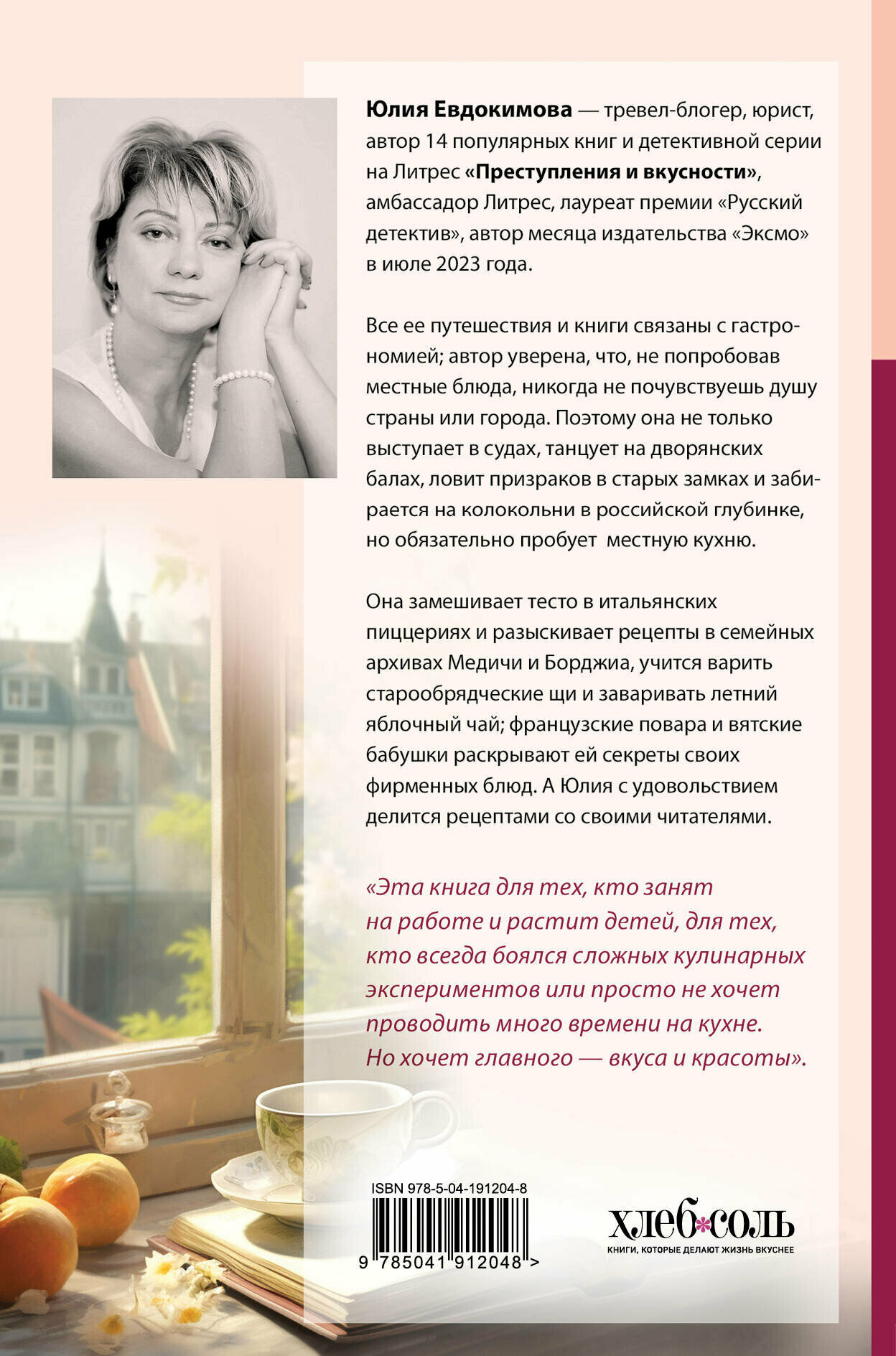 По рецептам Юлии Евдокимовой люди учатся готовить, а потом присылают ей в чат горячие благодарности, что все получается очень вкусным! Юлия решила, что пришла пора написать книгу рецептов, простых и аппетитных, с доступными в любом магазине продуктами, простыми в приготовлении рецептами и малыми временными затратами. Конечно, без историй и иллюстраций она не могла обойтись, но в отличие от 14 других ее книг, в новой — более 200 рецептов. Варианты со всего мира омлетов и фрикаделек, блюд из картофеля, кабачков и огурцов; пасты и ризотто, бутерброды, сэндвичи и сконы, чайные и кофейные напитки. Все получается, и без заморочки!