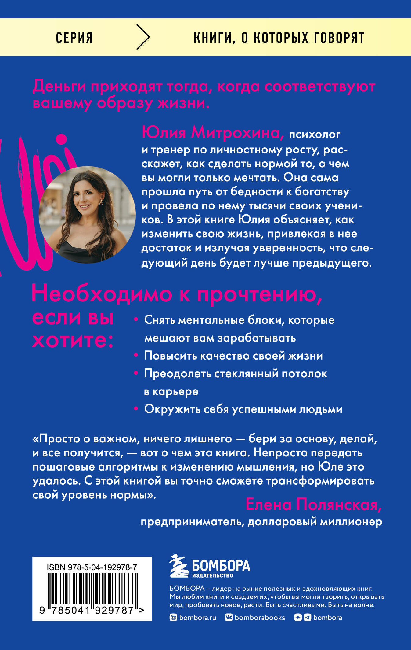 Деньги приходят тогда, когда соответствуют вашему образу жизни. Юлия Митрохина, психолог и тренер по личностному росту, расскажет, как сделать "нормой" то, о чем вы могли только мечтать. Она сама прошла путь от бедности к богатству и провела по нему тысячи своих учеников. В этой книге Юлия объясняет, как изменить свою жизнь, привлекая в нее достаток и излучая уверенность, что следующий день будет лучше предыдущего.