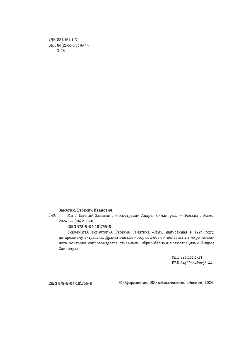 Книга: Мы (ил. А. Симанчука) (Замятин Евгений Иванович); ООО "Издательство "Эксмо", 2024
