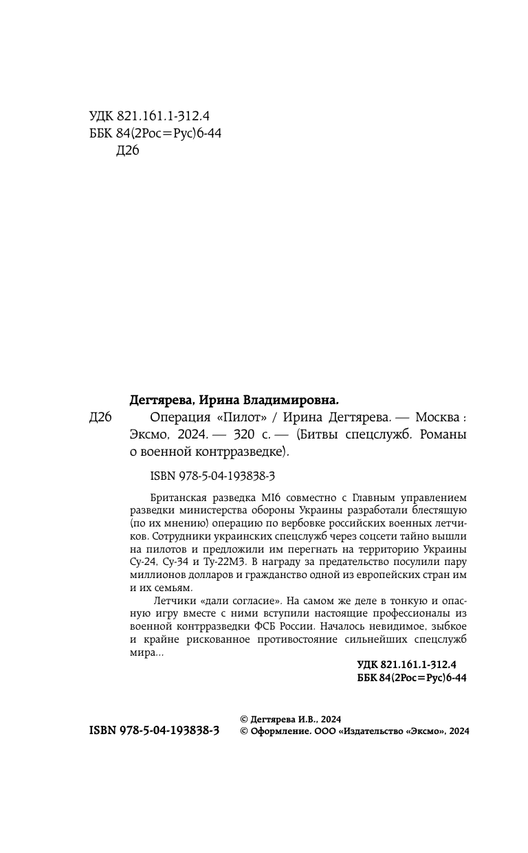 Книга: Операция «Пилот» (Дегтярева Ирина Владимировна); ООО "Издательство "Эксмо", 2024