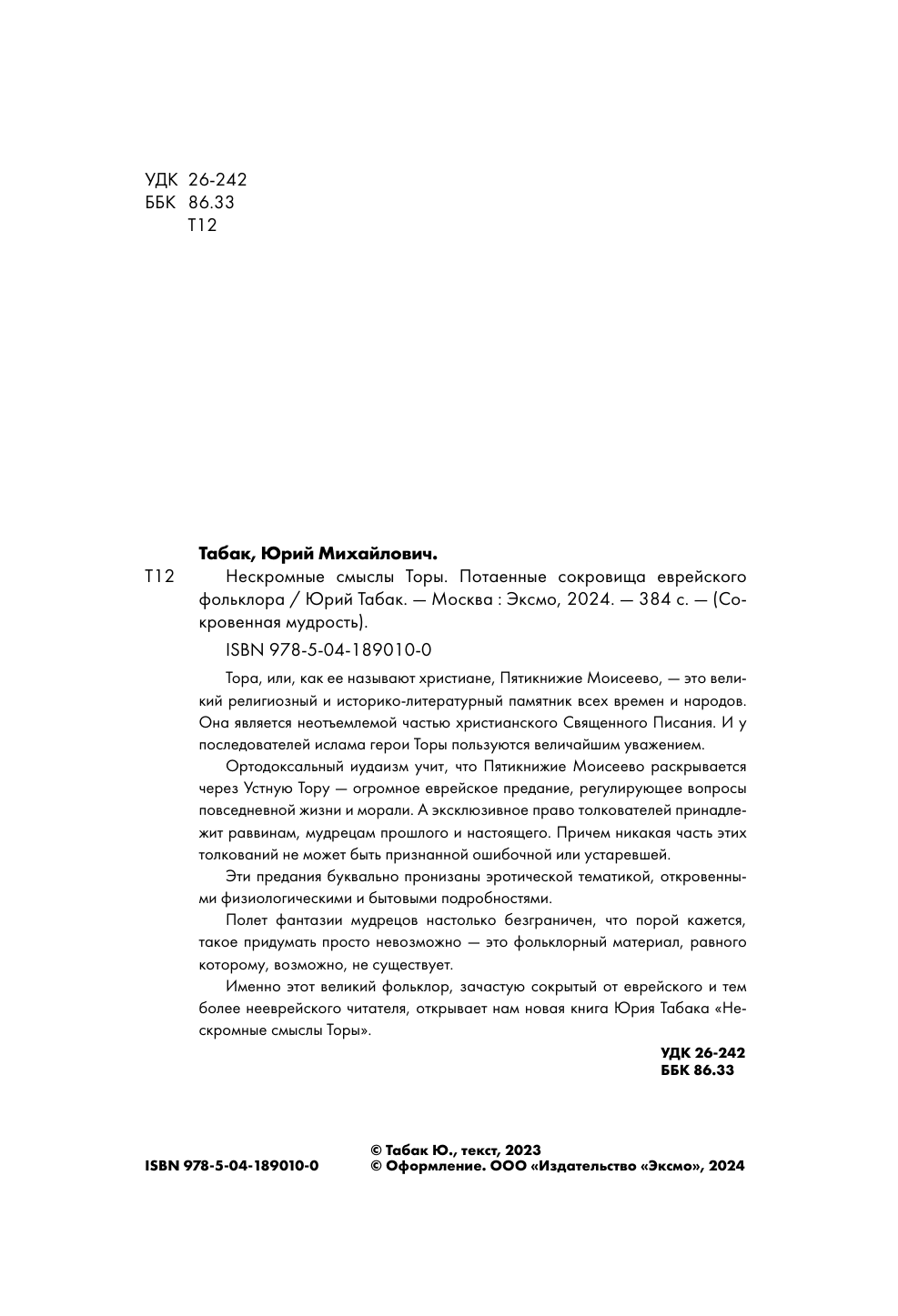 Нескромные смыслы Торы. Потаенные сокровища еврейского фольклора (Юрий Табак); ООО "Издательство "Эксмо", 2024