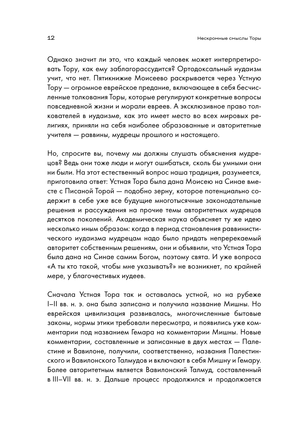 Тора или, как ее называют христиане, Пятикнижие Моисеево, это великий религиозный и историко-литературный памятник всех времен и народов. Она является неотъемлемой частью христианского Священного Писания. И у последователей ислама герои Торы пользуются величайшим уважением. Ортодоксальный иудаизм учит, что Пятикнижие Моисеево раскрывается через Устную Тору – огромное еврейское предание, регулирующее вопросы повседневной жизни и морали. А эксклюзивное право толкователей принадлежит раввинам, мудрецам прошлого и настоящего. Причем никакая часть этих толкований не может быть признанной ошибочной или устаревшей. Эти предания буквально пронизаны эротической тематикой, откровенными физиологическими и бытовыми подробностями. Полет фантазии мудрецов настолько безграничен, что, порой кажется, такое придумать просто невозможно – это фольклорный материал, равного которому, возможно, не существует. Именно этот великий фольклор, зачастую сокрытый от еврейского, и тем более нееврейского читателя, открывает нам новая книга Юрия Табака "Нескромные смыслы Торы".