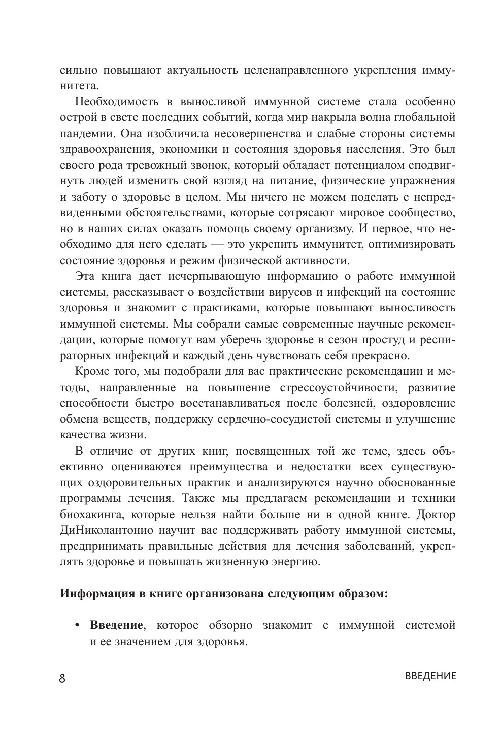 Для крепкого здоровья нет ничего важнее, чем иммунная система. Это защитный барьер, который оберегает от внешних угроз и всевозможных болезнетворных микроорганизмов, окружающих нас каждый день. Когда иммунная система ослаблена, снижается уровень энергии, ухудшается качество жизни и пополняется бесконечный список заболеваний, а разве такое может вдохновлять? Эта книга рассказывает, какие практики поддержки иммунитета действительно работают, а какие — лишь ловкий маркетинговый ход. Внутри: - практические рекомендации и методы, направленные на повышение стрессоустойчивости; - развитие способности быстро восстанавливаться после болезней; - оздоровление обмена веществ и укрепление сердечно-сосудистой системы; - рекомендации и техники биохакинга. Эта книга научит вас поддерживать работу иммунной системы, предпринимать правильные действия для лечения заболеваний, укреплять здоровье и повышать жизненную энергию.
