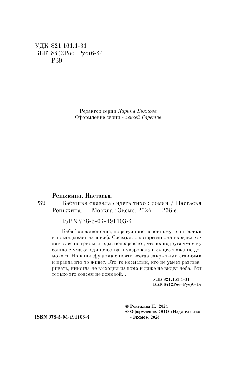 Бабушка сказала сидеть тихо (Настасья Реньжина); ООО "Издательство "Эксмо", 2024