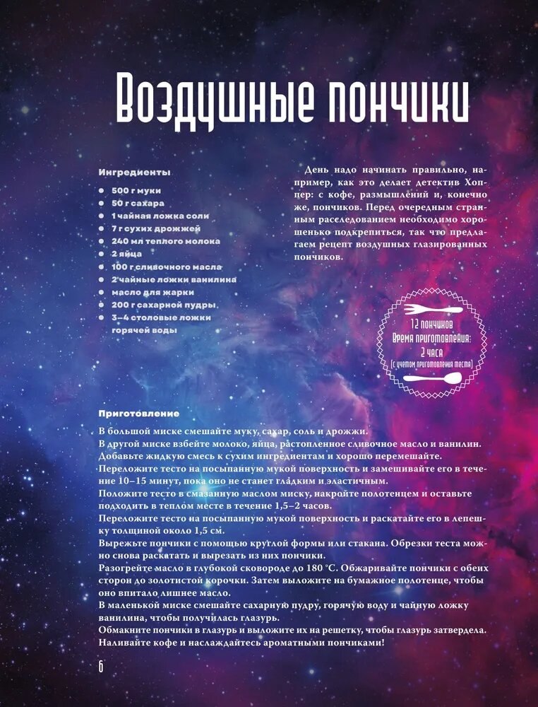 Вы готовы отправиться в путешествие по самым странным и необычным кулинарным традициям кино? В этой книге собрана удивительная коллекция рецептов по мотивам самых популярных мистических фильмов и сериалов: "Твин Пикс", "Доктор кто", "Семейка Аддамс", "Сверхъестественное", "Зачарованные" и другие. С помощью книги вы легко приготовите: • торт на День рождения Уэнсдей • любимый вишневый пирог агента Купера • завтрак Сэма и Дина Винчестеров • шашлык от Эдварда Руки-ножницы и многое другое Добро пожаловать в таинственный мир кулинарии!
