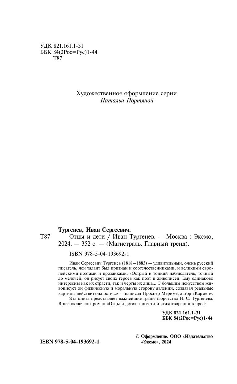 Книга: Отцы и дети (Иван Тургенев); Эксмо, Редакция 1, 2024