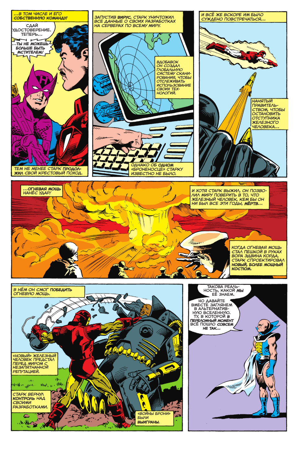 Вместе с Наблюдателем мы попадаем в альтернативную вселенную, где величайший ум земли, гений-изобретатель Тони Старк не смог справиться с утечкой данных о своих технологиях, благодаря чему десятки суперзлодеев получили опаснейшие бронекостюмы. Теперь не только секретные данные оказались в руках врагов Тони, но и он сам! Все его друзья и коллеги в опасности. Справится ли Неуязвимый Железный Человек с такой напастью? В обычных комиксах — скорее всего, но в мирах «Что, если?..» мы никогда не можем быть уверены, что у истории будет счастливый конец