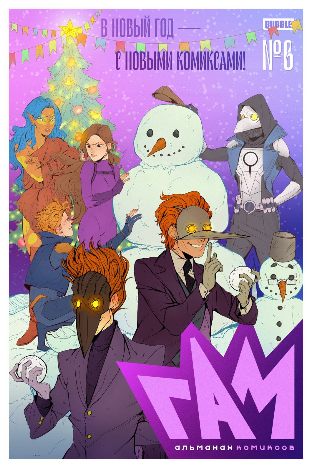 В этом месяце мы приготовили по-настоящему зимний выпуск «BUBBLE ГАМа». Помимо продолжения комикса «Новая Эра», в шестом номере альманаха нас ждёт новогодняя история «Судьба иронии, или с Новым комиксом!» от Алексея Волкова, Валентина Поткина и Елены Лебедевой, комикс о неземных приключениях «Прочь из космоса» от Анны Михайловой, Александры Кирсановой (которая подарила нам ещё и эту праздничную обложку) и Анастасии Сёмышевой, а ещё настоящий «Чумной консилиум» от Кирилла Кутузова, Тимура Айрона и Надежды Шевченко. В новом выпуске вы также встретите наши традиционные статьи, интервью Константина Тарасова и шикарный двусторонний плакат.