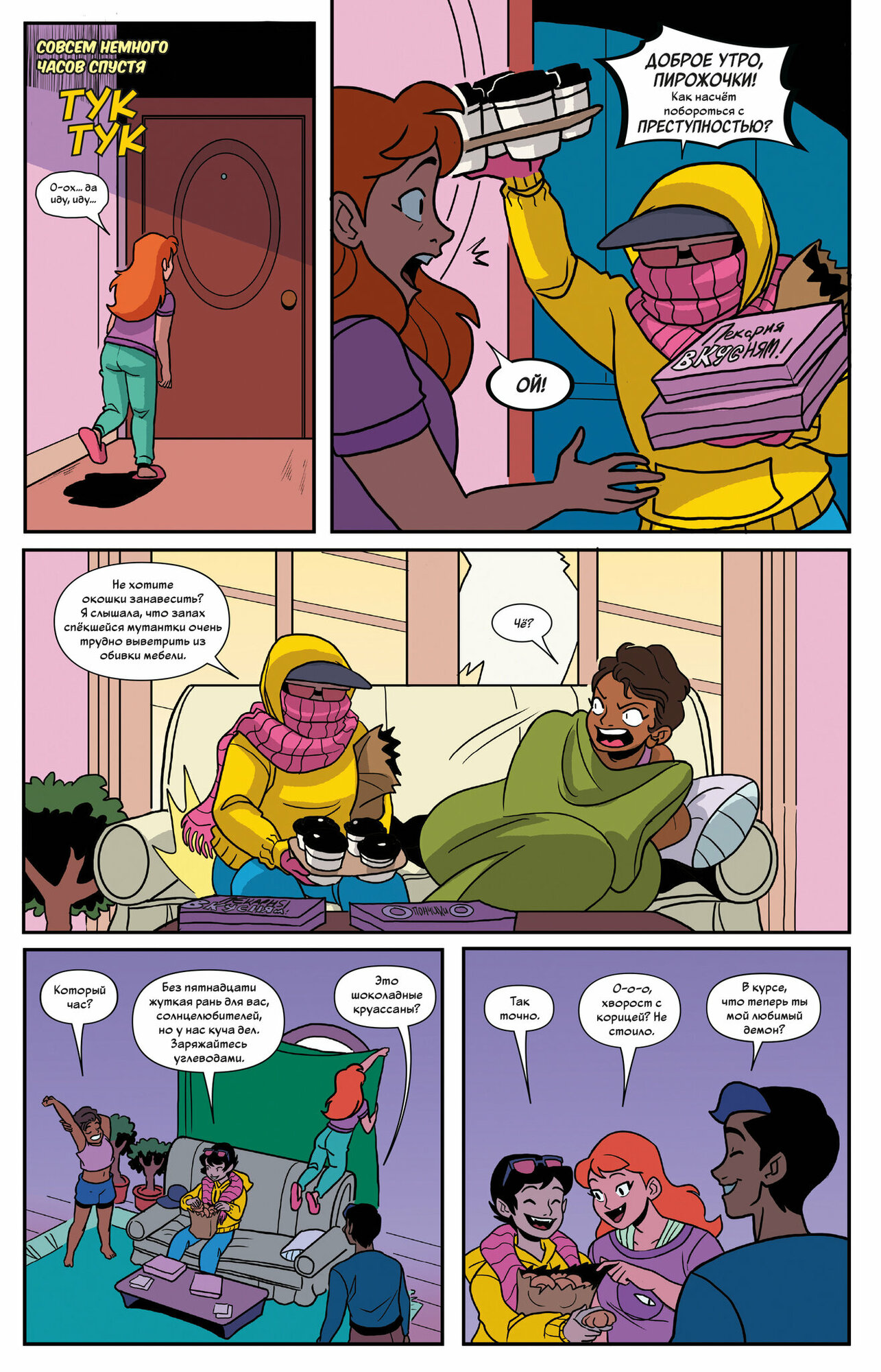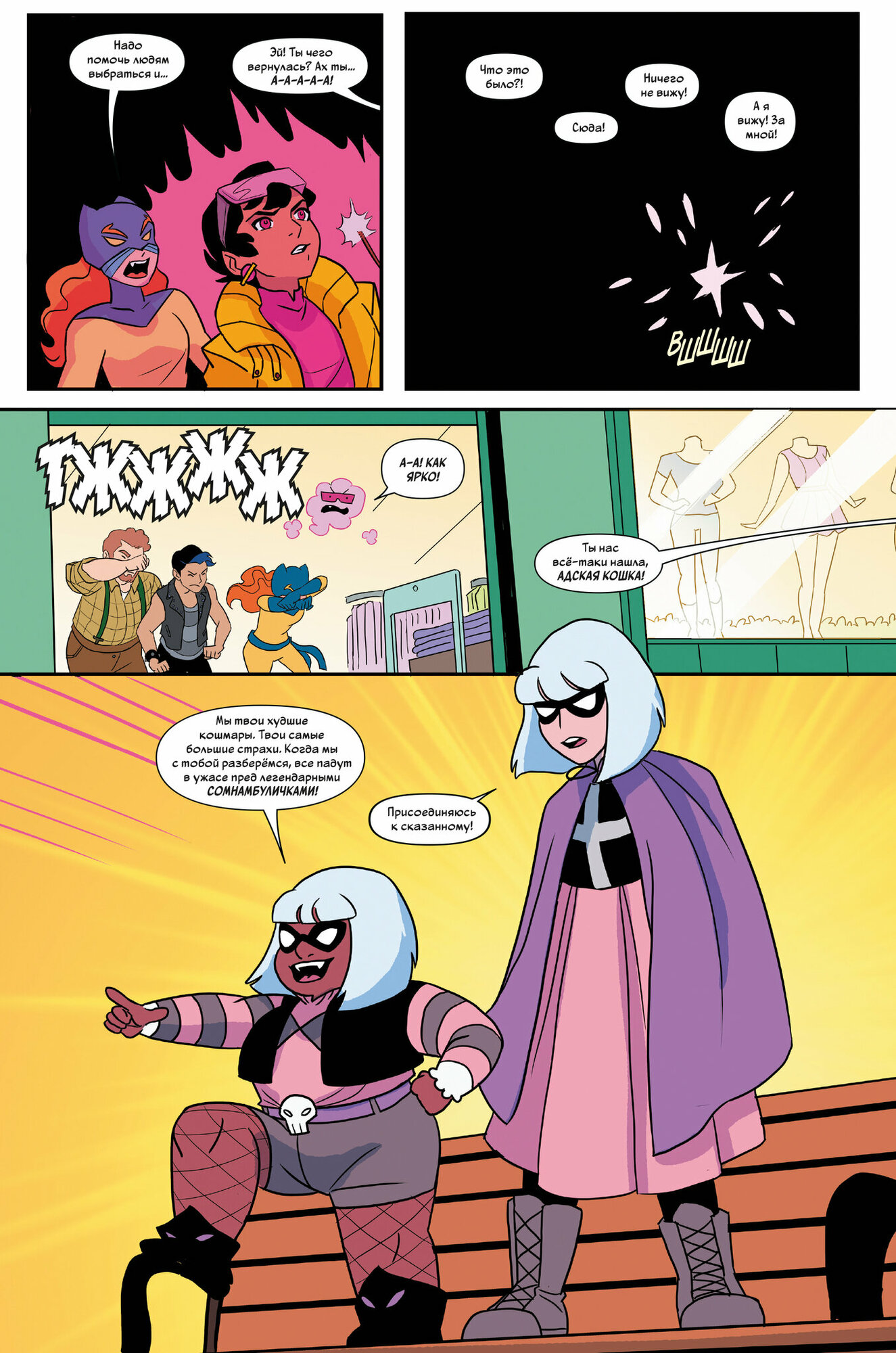 Как же Пэтси победить в кошачьей сваре, если Фелиция держит в лапах целую девчачью банду? Узнаете в финальной битве gato a gato! Затем Пэтси свалит болезнь — но не обычная простуда! Поди разбери, это бредовые сны или ожившие кошмары? Когда Бруклин захлестнёт волна хаоса, Адская Кошка сможет положиться только на самых верных друзей и супчик! Ведь ей хочется лишь выздороветь и тусить в торговом центре с Джубили: перекусить на фудкорте, глянуть киношку и приодеться. Само собой, не стоит опасаться никаких злодеев, чего бы им там делать? То-то же!