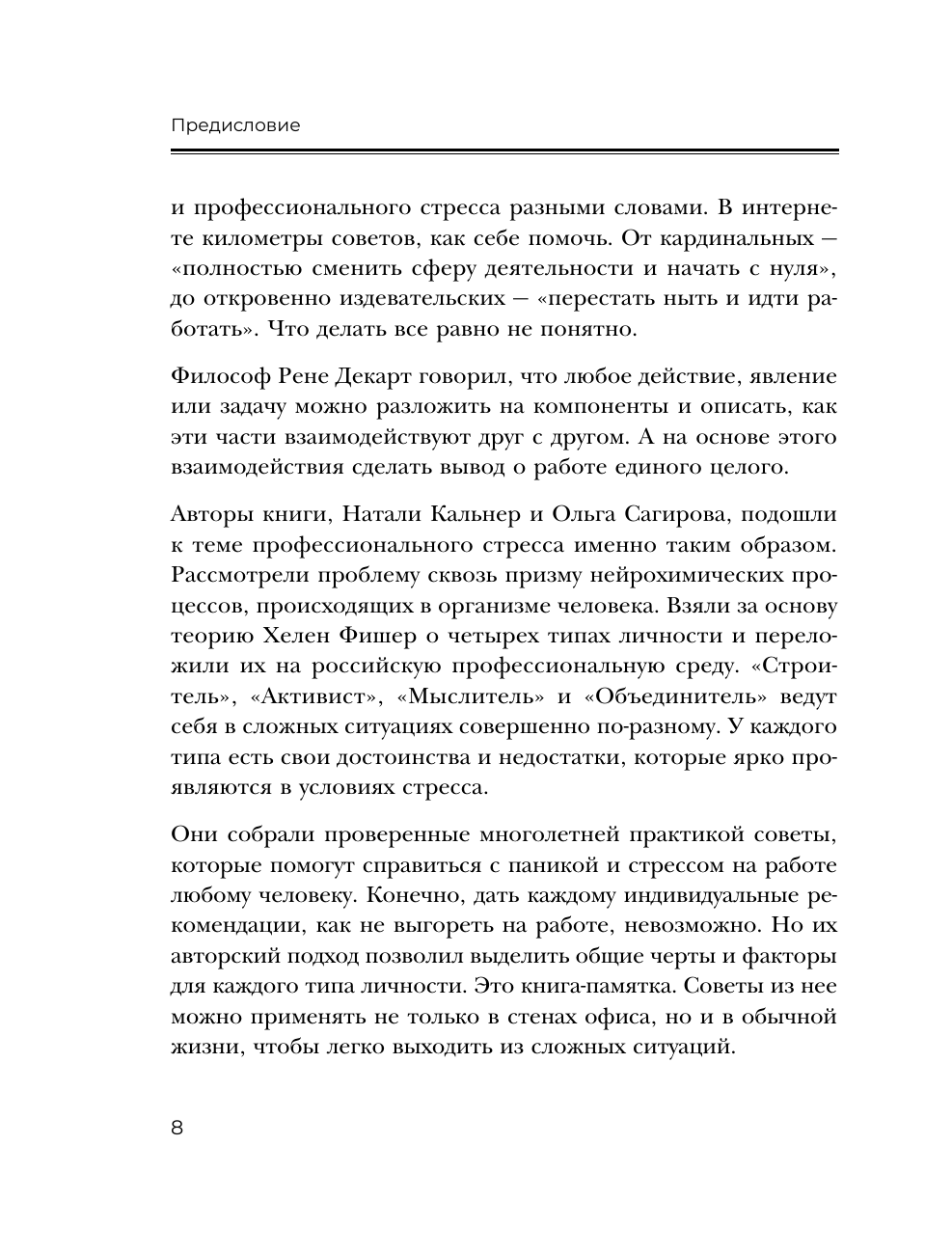 этой книги и раскрывает особенности восьми видов рабочего стресса и реакции на них четырех типов личности.