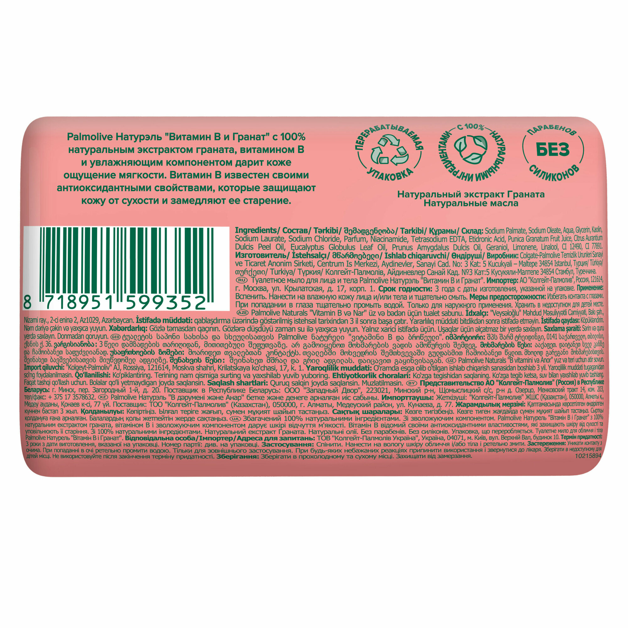 Туалетное мыло твердое Palmolive Натурэль Витамин B и Гранат с увлажняющим компонентом 90г
