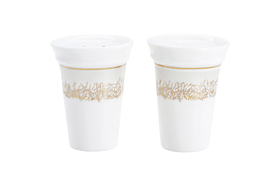 Благодаря необычному золотому декору посуда смотрится современно и празднично.