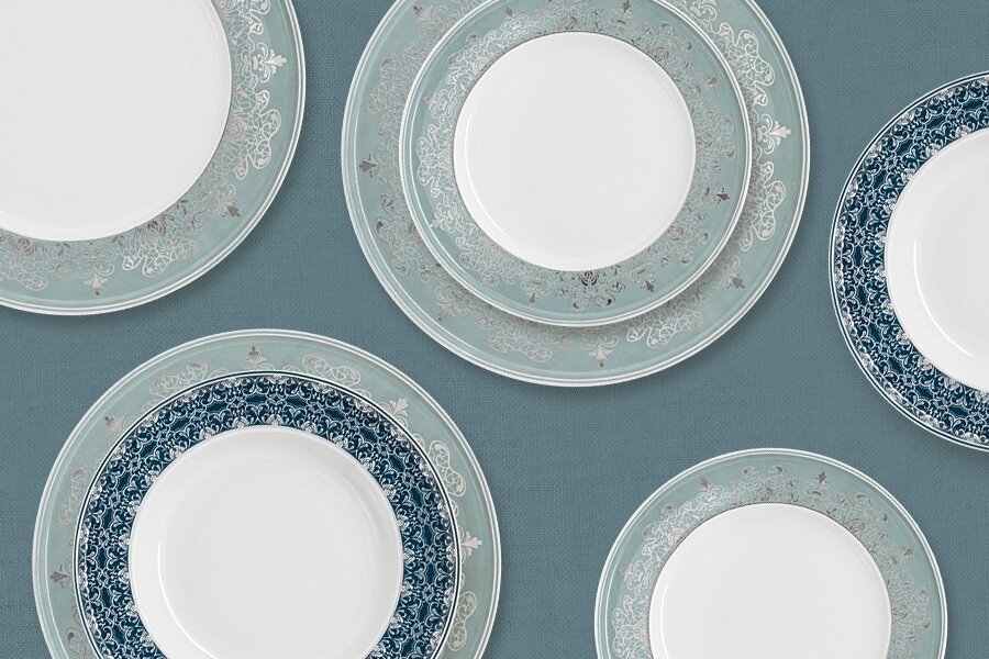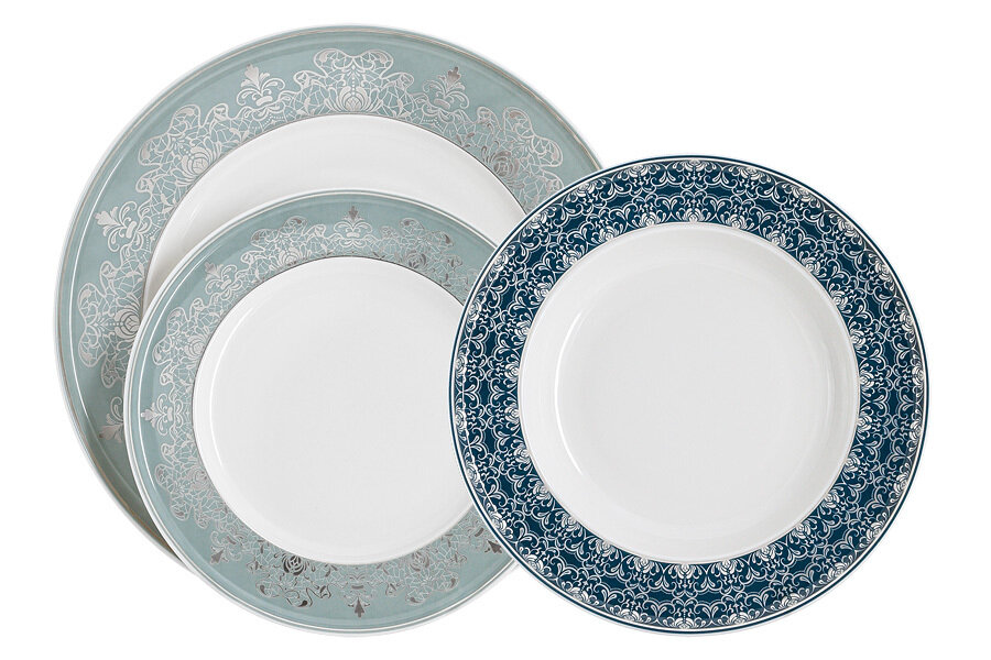 | Состав набора | 6 обеденных тарелок 27 см, 6 суповых тарелок 21,5 см, 6 закусочных тарелок 20 см, 1 салатник 23 см, 1,8 л, 2 салатника 14 см, 0,6 л, блюдо 35,5 см, блюдо 25 см, соусник 0,5 л, блюдо под соусник 21 см, солонка, перечница |