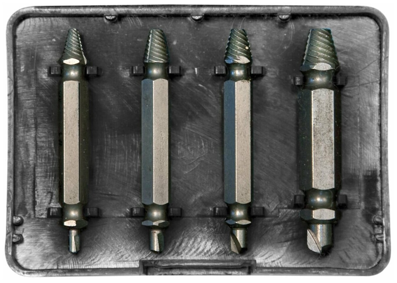 Набор экстракторов двусторонних Fit сталь S2, 4 шт. 36452 изготовлен из хромомолибденовой стали. Благодаря этому инструменты имеют повышенную износостойкость и прочность, не подвержены образованию коррозии и ржавчины.Основные преимущества:обеспечивает эффективный результат за короткий промежуток времени;рассчитан на длительный срок службы без потери первоначального качества;имеет компактный размер и небольшой вес для удобной эксплуатации.Набор оптимален как для начинающих, так и профессиональных мастеров. Инструмент позволяет за короткое время удалить крепежный элемент с поврежденным шлицем.