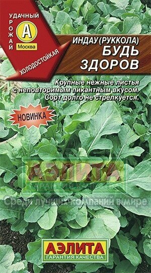 **Рукола «Будь здоров»** — раннеспелый сорт с вертикальными розетками листьев диаметром 20-24 см и массой от 20 до 30 г. Листья крупные, с нежной структурой и пикантным вкусом.