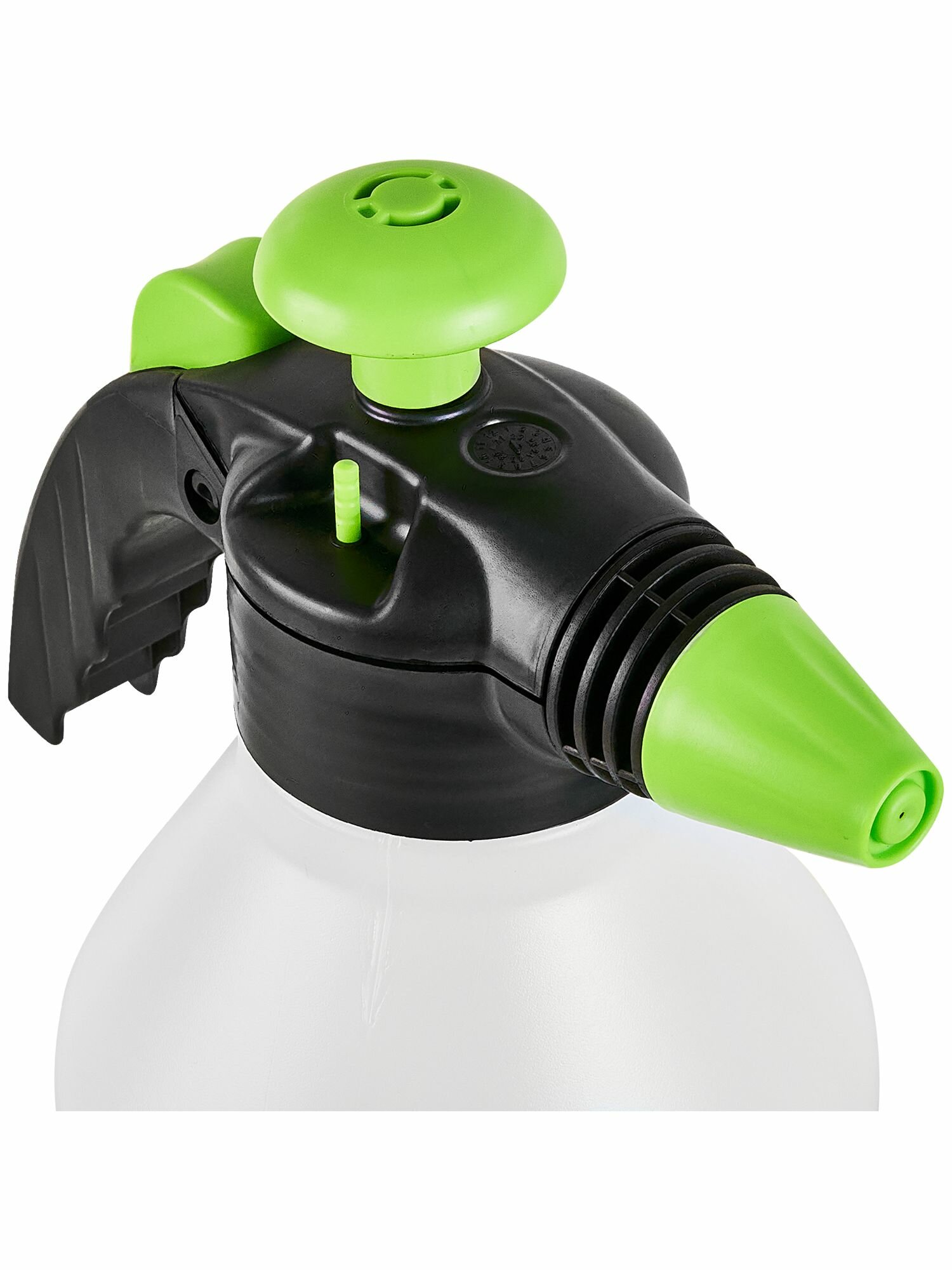- Регулировка распыла от струи до тумана даёт возможность использовать опрыскиватель, как для защиты растений от вредителей, так и для полива;