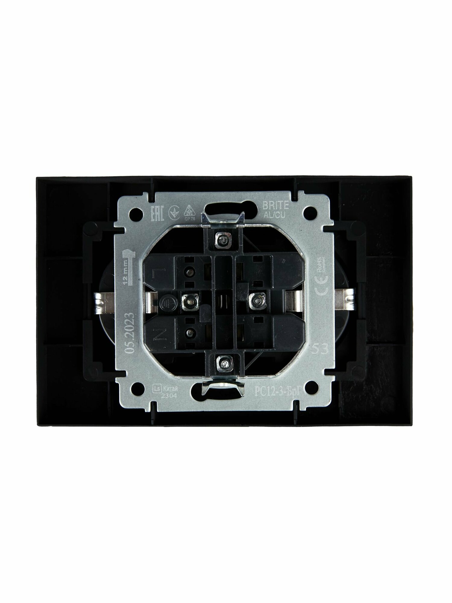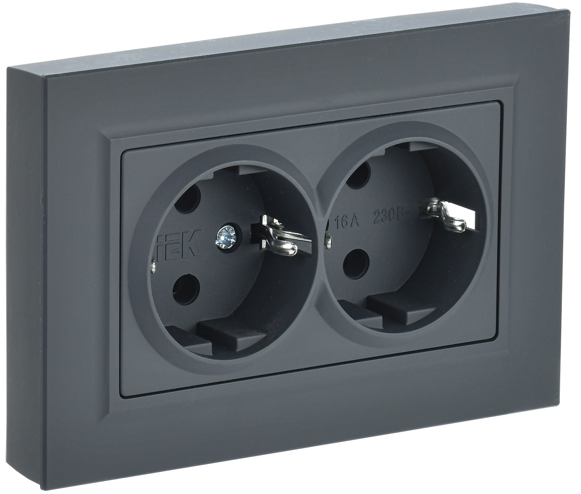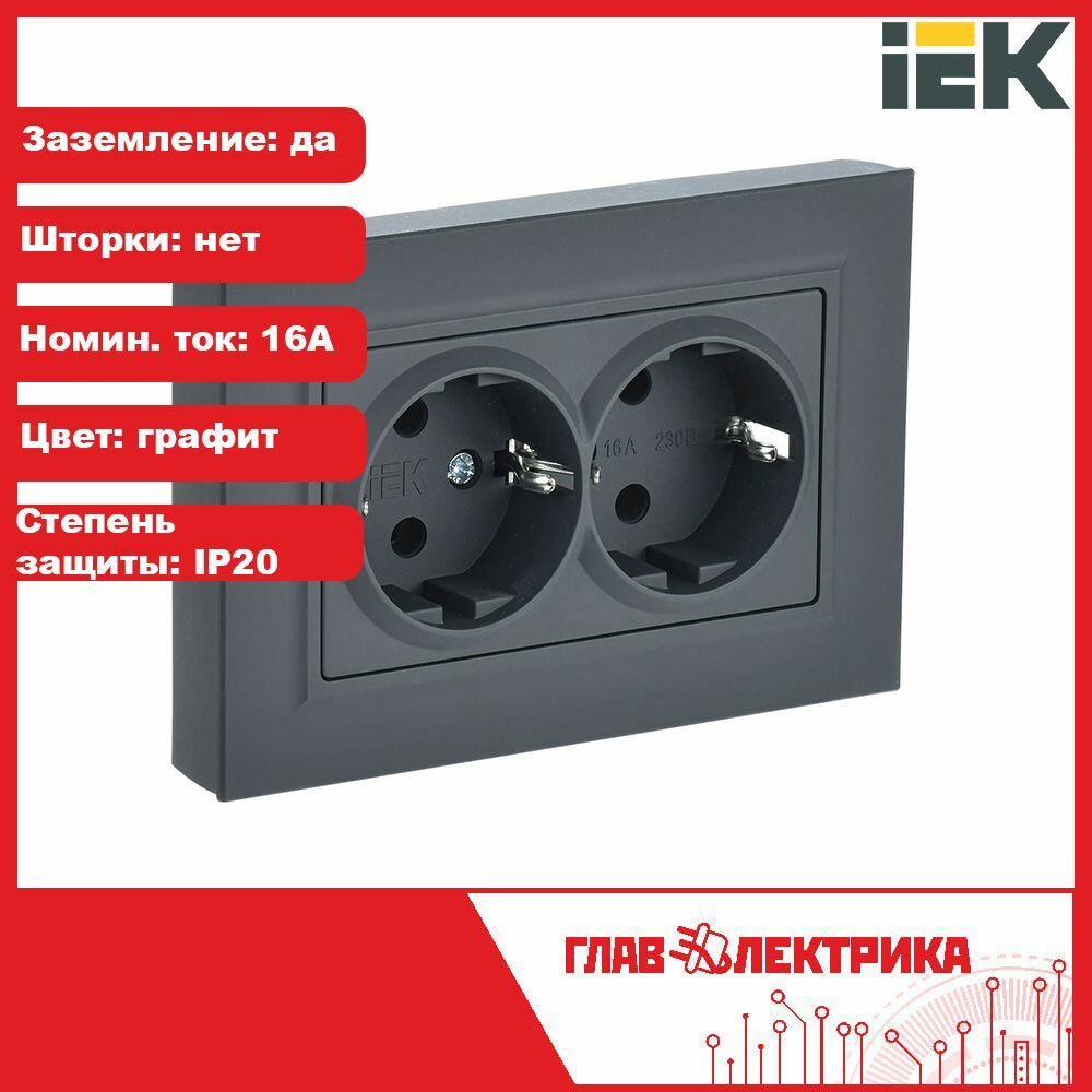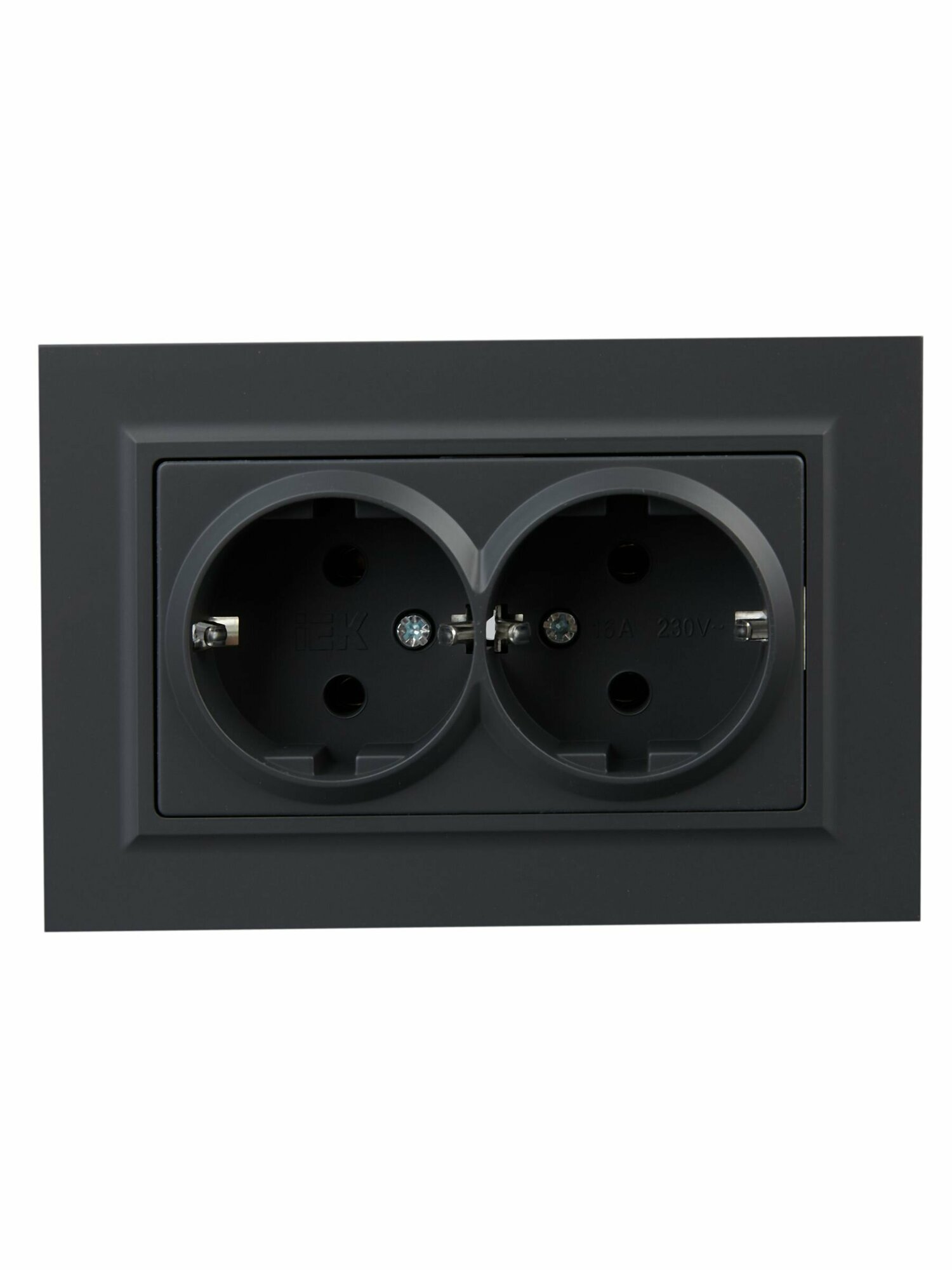 Розетка двойная встраиваемая IEK Brite РС12-3-БрГ с заземлением цвет графит