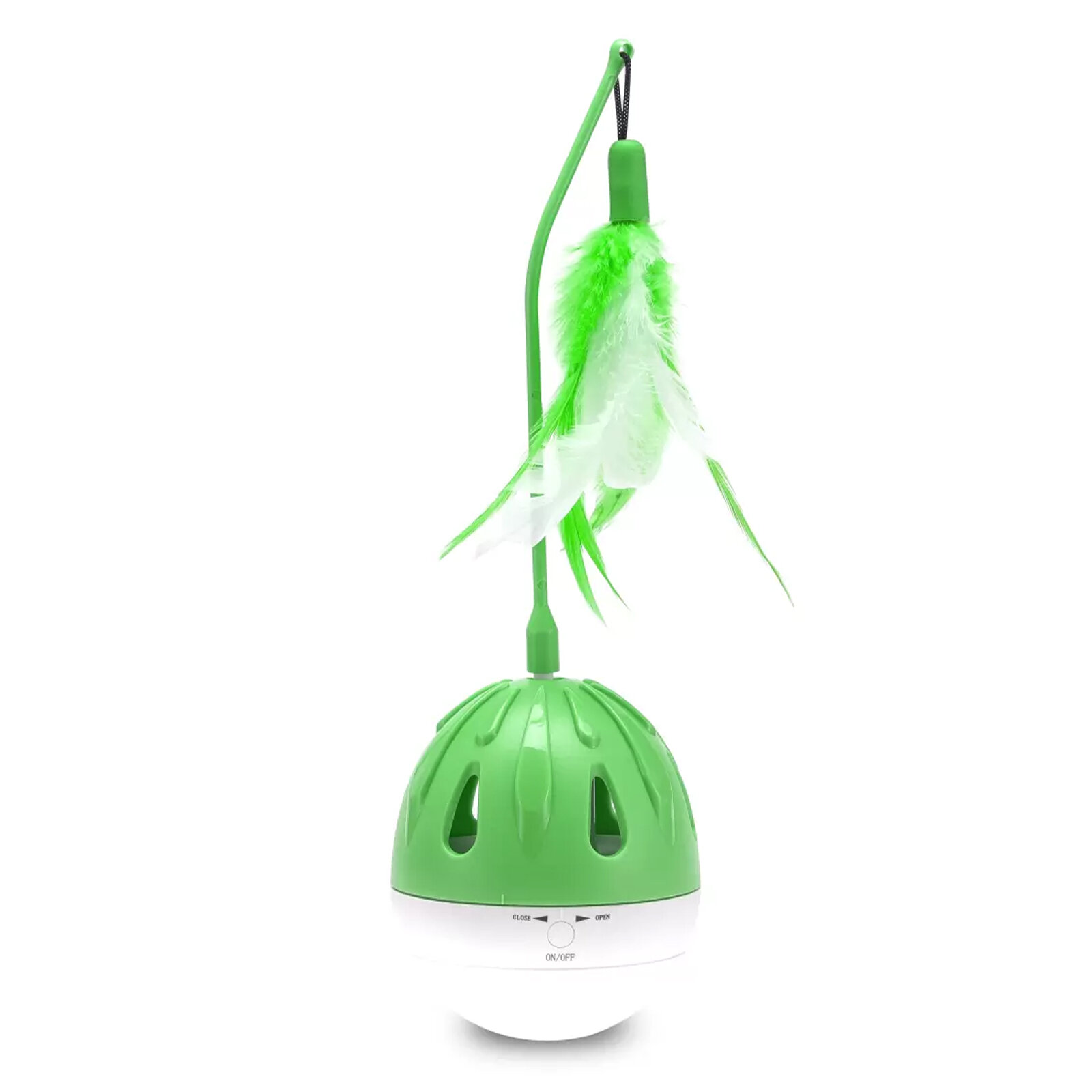 SkyRus Игрушка для кошек интерактивная с перьями "Swing Ball" зелёная SKYRUS интерактив (00417/SR)