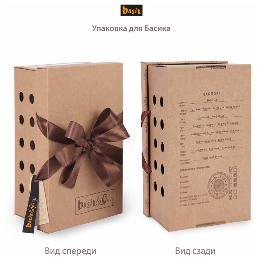 Милый котёнок Басик понравится и мальчику, и девочке! Этот очаровательный малыш очень озорной и весёлый: он просто обожает, когда с ним играют и берут его с собой в гости, любит ласку, любовь и внимание. У котика мягкая плюшевая шёрстка роскошного дымчато-серого цвета, симпатичная мордочка с большими глазками и коричневые подушечки на лапках. Игрушка поставляется в закрытой подарочной коробке, подвязанной атласными лентами.