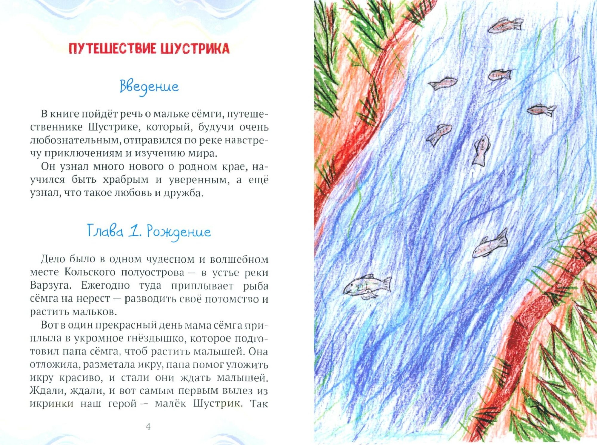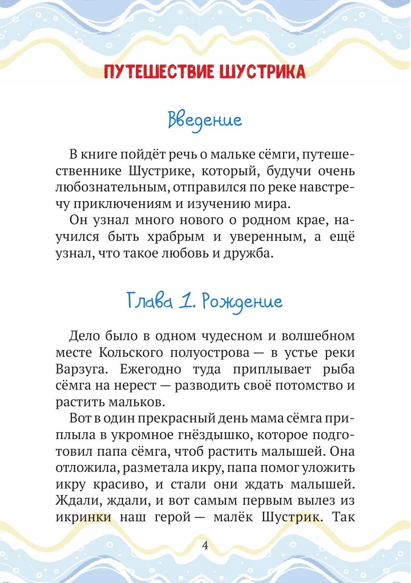 Доводилось ли тебе, дорогой читатель, бывать на Кольском полуострове? Там, где течёт река с необычным названием Варзуга? Если ты пока не совершал путешествия в те края, добро пожаловать! Если же ты живёшь поблизости, пришло время узнать больше о родных местах. На страницах этой книги ты сможешь совершить путешествие в компании малька сёмги по имени Шустрик. Тебе откроются тайны одного из самых живописных уголков России. Ты узнаешь много нового о природе, людях и достопримечательностях уникального и самобытного Кольского полуострова, восхитишься его первозданной красотой и найдёшь новых друзей. Ну что, начинаем приключение?