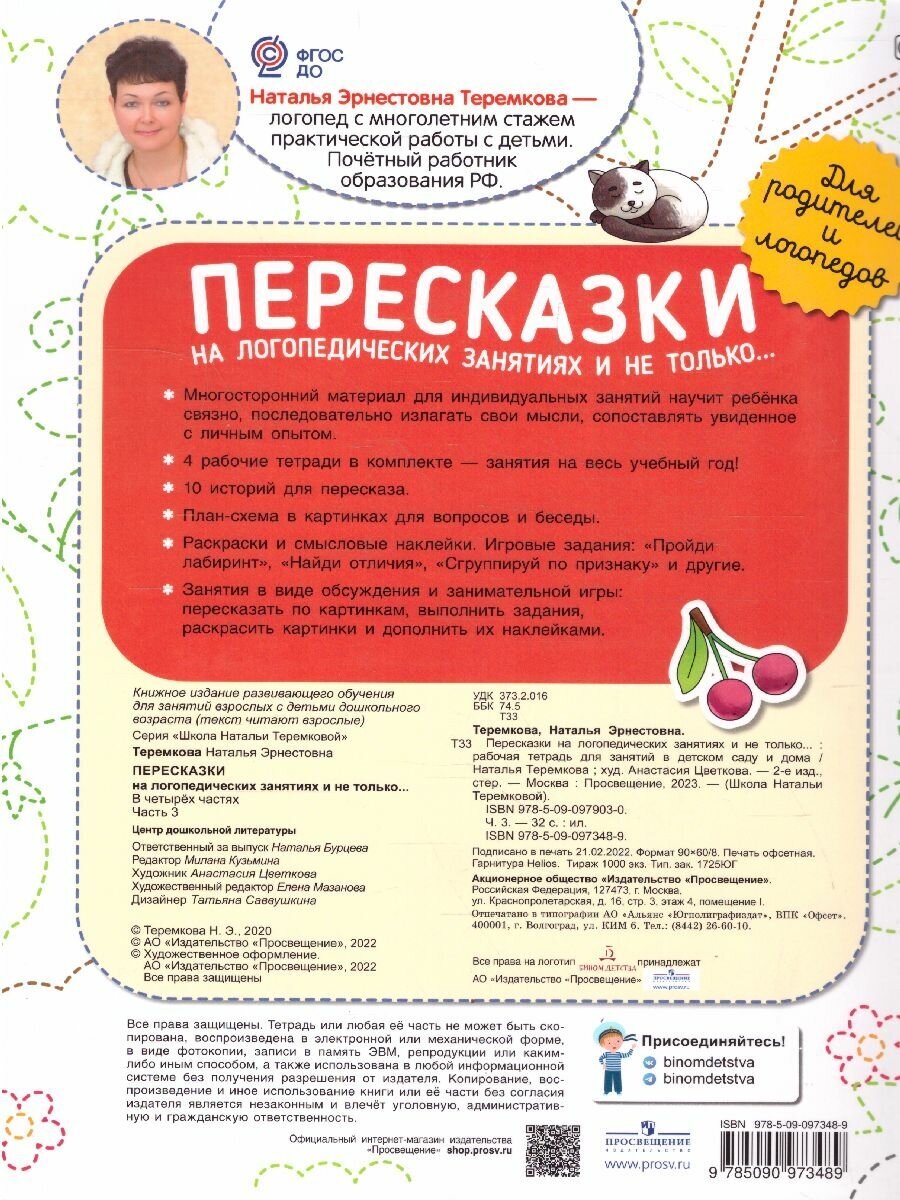 Книга Пересказки на логопедических занятиях и не только…. В 4 ч. Ч. 3. Рабочая тетрадь (Теремкова Наталья Эрнестовна); Просвещение-Союз, 2022